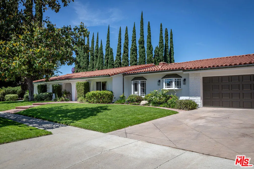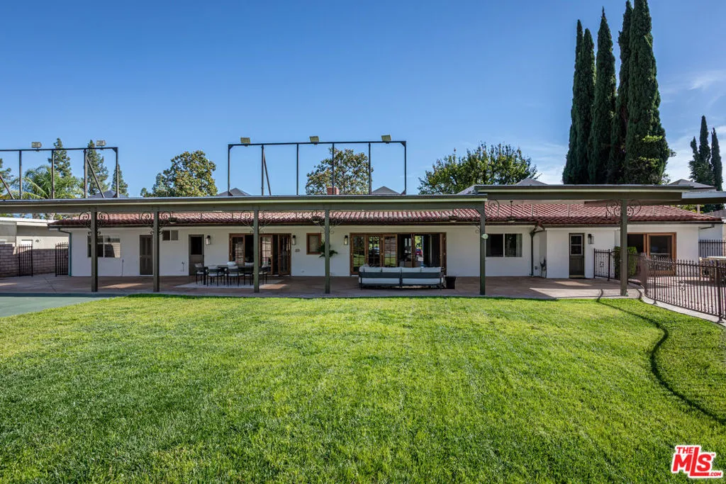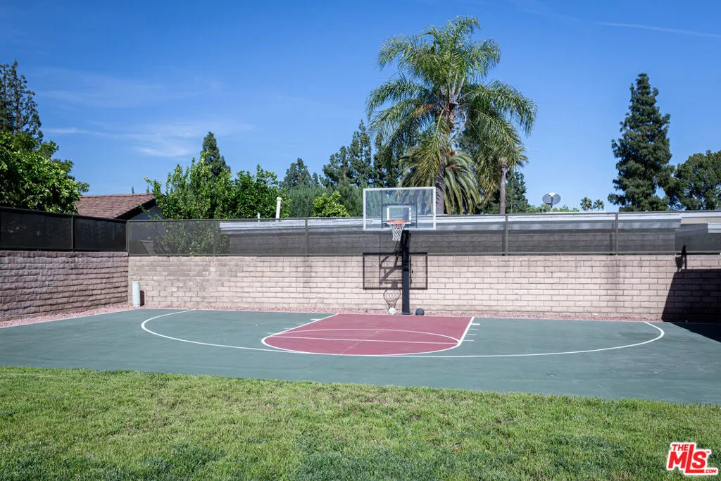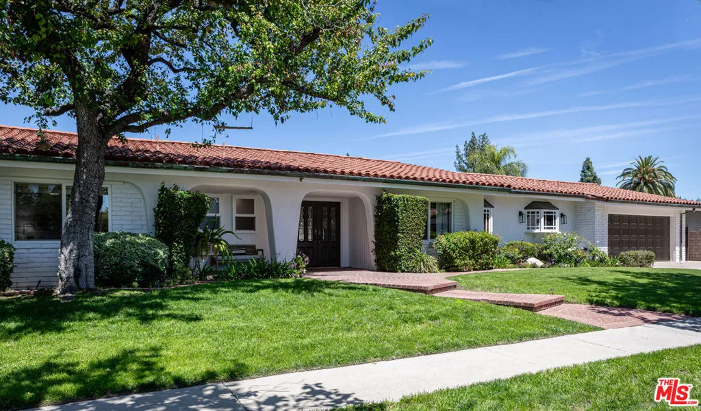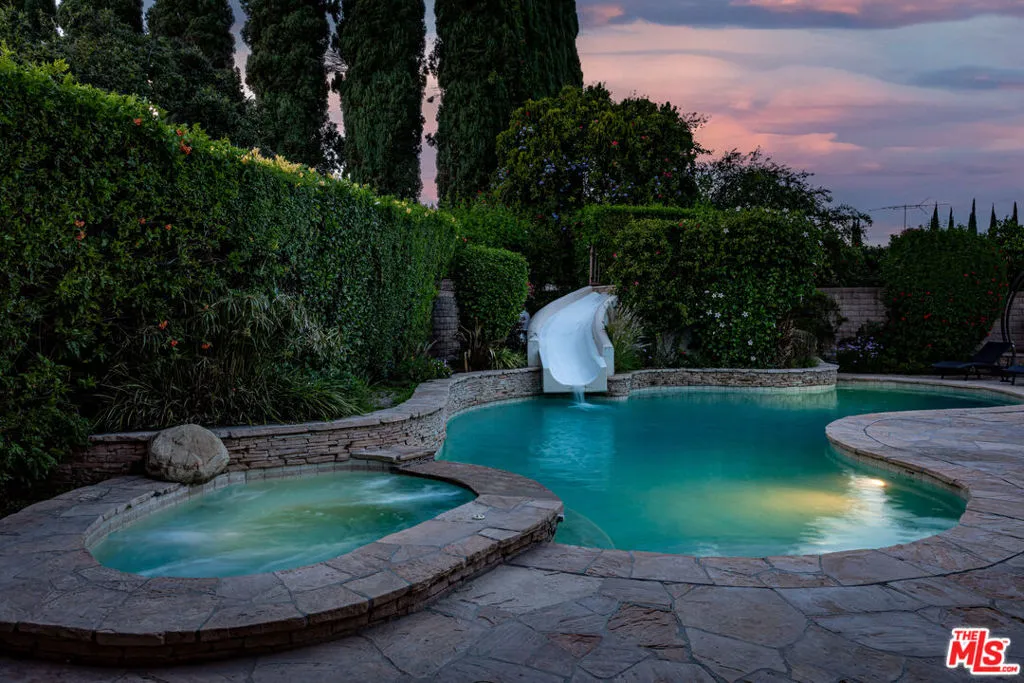 Welcome to 19523 Vintage Street! A Private Resort-Style Retreat in the Heart of Northridge. An incredible opportunity to own a truly special family home where everyday living feels like a getaway. Set on an expansive lot along a quiet, extra-wide street, this 5-bedroom, 3.5-bath residence offers the perfect blend of comfort, scale, and unforgettable indoor-outdoor living. From the moment you arrive, the home invites you in with warmth and charming, inviting front yard framed by lush greenery, vibrant flowers, a brick walkway, and a covered front porch. A beautiful shade tree, complete with a classic tree swing, sets the tone for the lifestyle this home so effortlessly delivers. Inside, the home is open, flowing, and expansive designed to bring people together while offering flexibility and privacy. A formal enclosed dining room creates the perfect setting for gatherings, while the spacious kitchen serves as the heart of the home, featuring a large island, built-in banquet seating, and generous space for everyday living and entertaining. An interior laundry area with a plethora of storage ensures functionality meets convenience, and a direct-access two-car garage adds ease to daily life. A unique and highly desirable feature is the tucked-away bedroom, ideal as a private guest suite, office, or extended family space with its own access to the backyard, creating a sense of separation and versatility rarely found. The true magic unfolds as the home opens to the backyard through five sets of hardwood French doors that blend the line between inside and out, I'm true al fresco style. Step into a breathtaking outdoor oasis designed for both relaxation and unforgettable entertaining. A custom pool with spa and water slide anchors the space, surrounded by a built-in outdoor kitchen, half-court basketball sport court, and expansive grassy area for play. Exterior built-in storage keeps everything organized from pool toys to outdoor essentials while a stunning historic California mission backdrop adds character, charm, and a sense of escape. Here, you're transported to another world. Whether hosting lively gatherings, enjoying quiet mornings under the covered patio, or simply soaking in the beauty of the surroundings, every moment in this home feels elevated. With both front and backyard sprinkler systems, the lush landscaping remains effortlessly maintained year-round. Located just minutes from a vibrant mix of shops, dining, and some of the area's most sought-after schools, this home offers the perfect balance of tranquility and accessibility. Lovingly cared for and thoughtfully designed, this is more than a home -it's a retreat, an entertainer's dream, and the backdrop for a lifetime of memories. Come experience it for yourself, this one won't last.