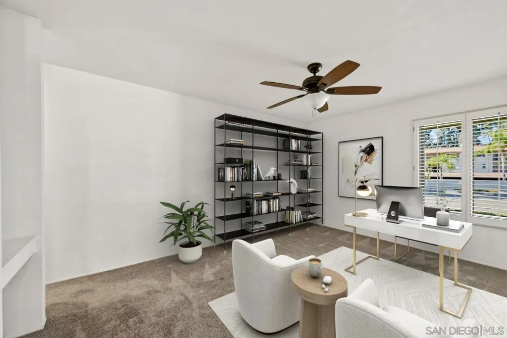 This beautifully situated single-story end-unit offers the privacy and comfort of having no neighbors above or below, surrounded by lush trees and serene greenery. The thoughtfully designed two-bedroom layout features a spacious living area that opens to a large private patio—perfect for relaxing or entertaining—complete with a convenient storage room. Inside, the home offers an in-unit laundry room, a walk-in closet in the primary bedroom, and modern upgrades including a solar system for added efficiency and comfort. Two assigned parking spaces provide everyday convenience. Residents enjoy access to resort-style community amenities, including pools, spa, and tennis courts, all within a welcoming, dog-friendly neighborhood. Ideally located in San Diego, this home combines peaceful surroundings with easy access to everything the area has to offer.