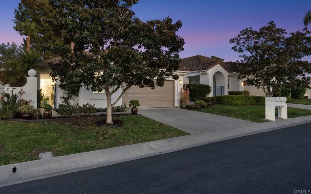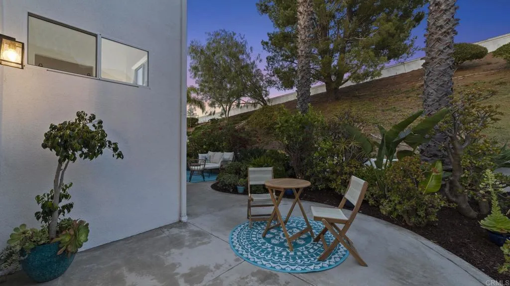 Wow! Amazing designer remodeled 1 story detached 2 bed 2 bath Andros is model beautiful! High ceilings throughout provide a spacious and open floorplan. Come and play in Ocean Hills Country Club fabulous amenities and activities and enjoy your private lot that backs a spacious hillside within the desirable village of Portofino. This exceptional home blends comfort, privacy, and resort-style living. 1,482 sf of gracious living features vaulted ceilings throughout & an open-concept design that flows beautifully from the moment you enter. This home is like new—designer has thoughtfully chosen the Luxury vinyl plank flooring with Italian stone flooring in bathrooms, bright fresh paint, new lighting, ceiling fans in each room, gorgeous new white kitchen soft-close cabinets with leathered granite counter tops, bar seating, shiny new LG French door refrigerator, slide-in range with above stove microwave vented thru roof, quiet dishwasher and a fabulous walk-in pantry. Decorator bathrooms feature Italian stone tile flooring, —primary has dual sink vanity with leathered granite, separate loo and a walk in luxury shower; the hall bath has a new deep tub/shower and a 48” vanity. The newly designed laundry room is beautiful, with spacious storage and new full size LG washer/dryer tower. This room is attached to the garage so bringing in purchases is easy. Everyone will love the oversized garage- ready for 2 cars and your hobbies. Your outdoor space is like a private oasis with mature plants designed for low-maintenance with a peaceful hillside backdrop while the inviting entry has a covered patio. Ocean Hills Country Club offers an unmatched lifestyle featuring greenbelts throughout with an 18-hole championship golf course including unlimited golf privileges for $15 yr, along with an array of amenities including pickleball, tennis, bocce ball, a swimming pool, a clubhouse, and a vibrant calendar of social events and over 40 clubs- including sailing. The HOA maintains all the front yards, does maintenance on the roof, and keeps the sparkling Grecian white buildings painted on a repeating schedule. Just minutes from the beaches of North County San Diego and convenient access to the 5 freeway, this turn-key home delivers coastal living at its finest. Rarely does a property with this combination of upgrades, outdoor space, and location come to market—don’t miss the opportunity to make it yours.