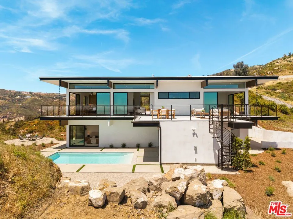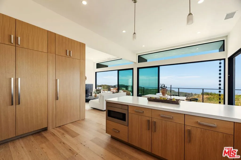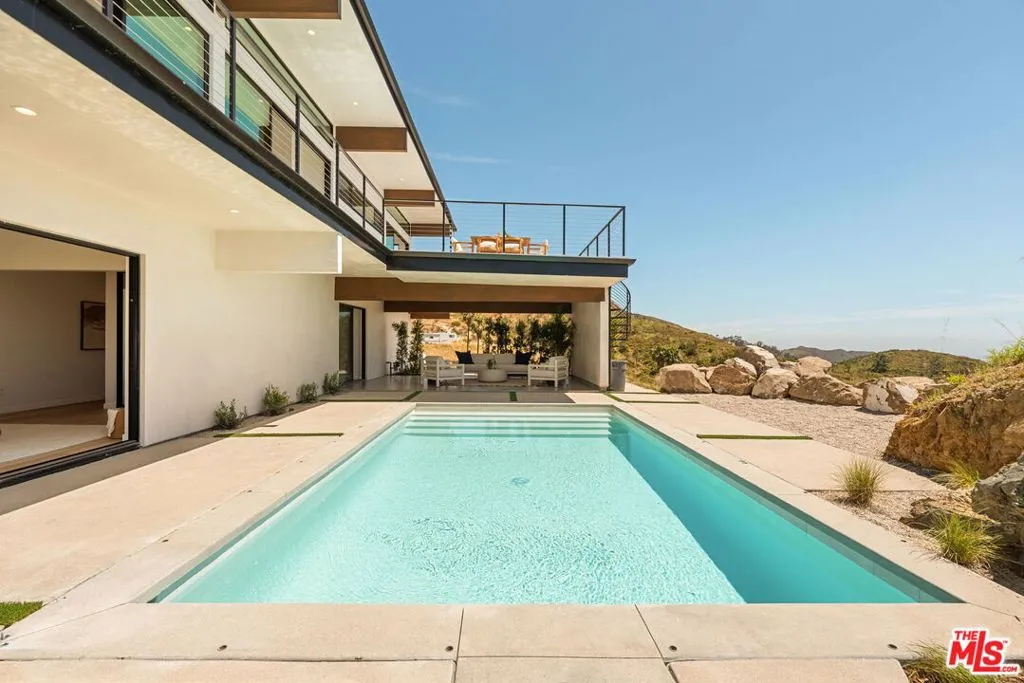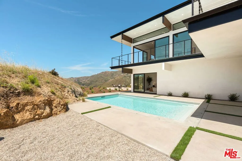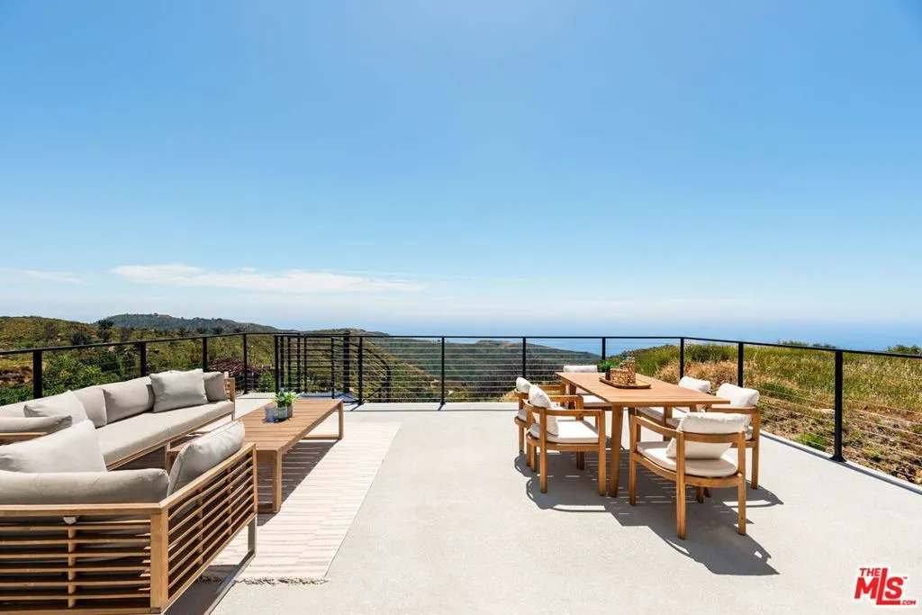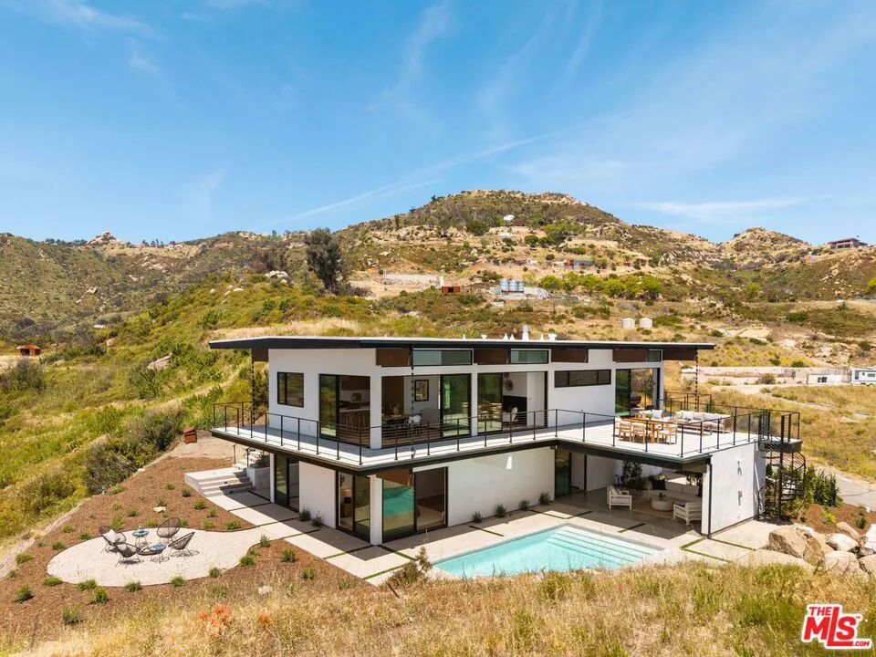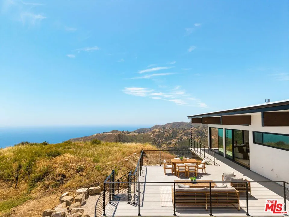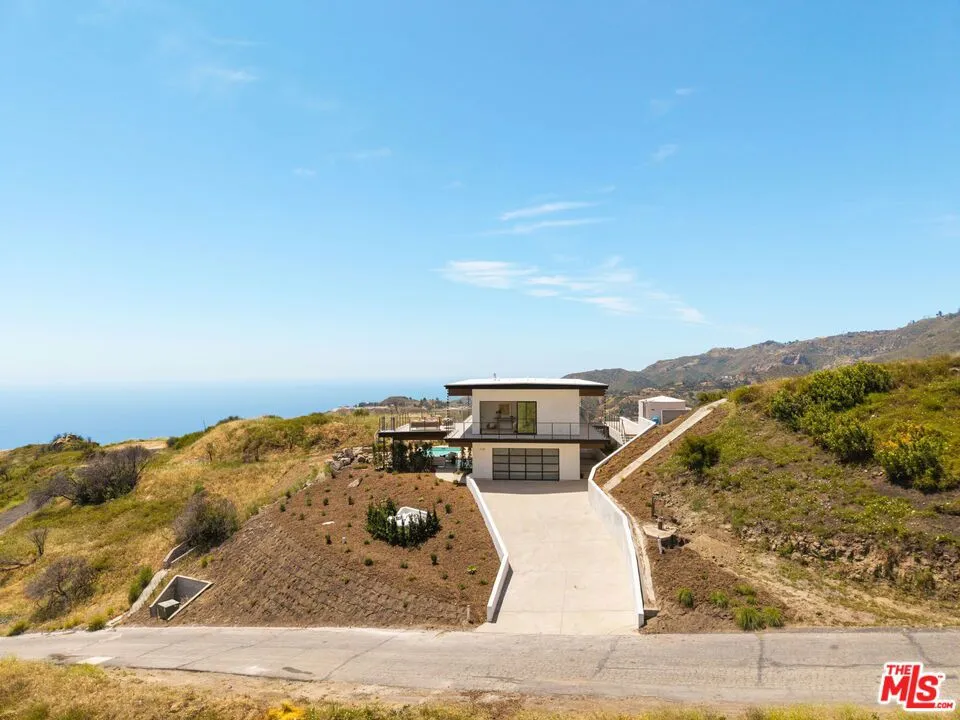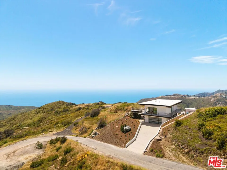 Welcome to your private sanctuary nestled in the serene Malibu canyon. This exceptional new construction Modern home, designed by renowned architect Vitus Matare, offers an unparalleled indoor-outdoor lifestyle with breathtaking ocean views from every room. Set on an expansive 42,916-square-foot lot, the residence seamlessly blends coastal elegance with the tranquility of its natural surroundings. Thoughtfully designed to maximize its setting, the home offers over 4,300 square feet of combined indoor-outdoor living, where the main living and dining areas open effortlessly onto a sprawling deck creating a true extension of the home and an ideal backdrop for entertaining or quiet moments overlooking the Pacific. At the heart of the home, a chef's kitchen is outfitted with state-of-the-art appliances and a discreet hidden pantry, combining sleek design with everyday functionality. The primary suite is a peaceful retreat, where you wake up to the sunrise over the canyon, complete with a spacious walk-in closet and a spa-like bathroom featuring a soaking tub, walk-in shower, and separate water closet. Downstairs, two additional bedroom suites each offer their own distinct perspectives of the ocean and surrounding canyon and mountain landscape, providing comfort and privacy for guests or family. A custom wine room tucked beneath the stairs adds a refined touch for collectors and entertainers alike. The outdoor experience is equally compelling. A shimmering pool anchors the lower level, accompanied by a versatile lounge space that can be enclosed to create a secondary family room, library, office, studio, or gym - tailored to your lifestyle. A sunset-facing seating area offers the perfect setting to unwind at the end of the day. Additional features include a two-car garage with EV charging, a long private driveway with ample additional parking, and a 10,000-gallon water tank providing added self-sufficiency. Tucked away in a peaceful canyon setting, the property offers a rare sense of seclusion and privacy, while remaining conveniently located just 15 minutes from Topanga, 15-20 minutes to the Pacific Coast Highway, and to The Commons at Calabasas. This is living at its finest - where nature, design, and modern comfort come together in perfect harmony.