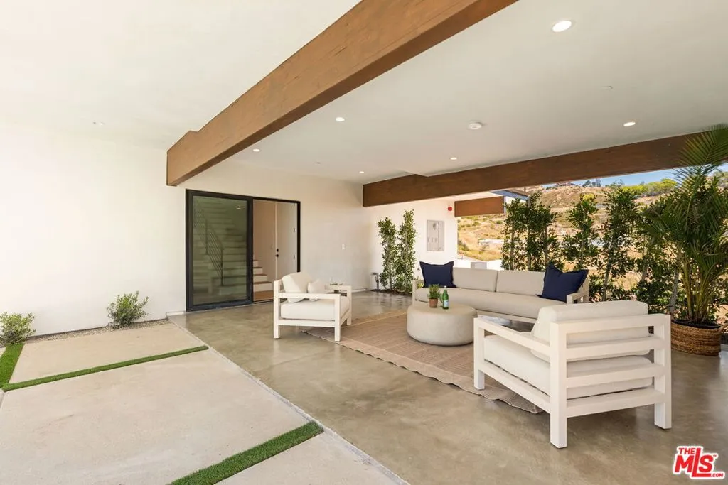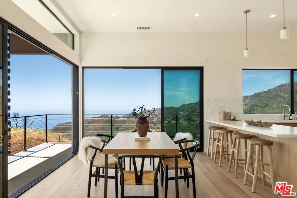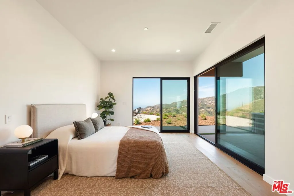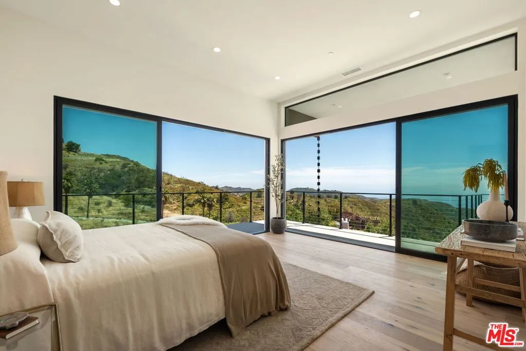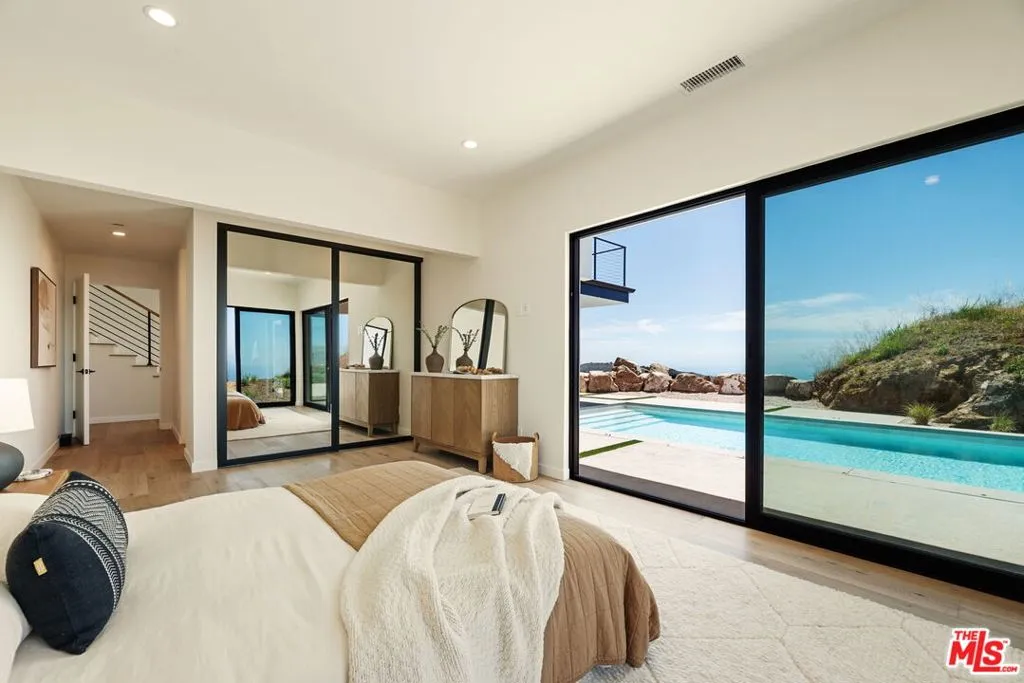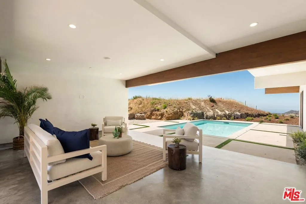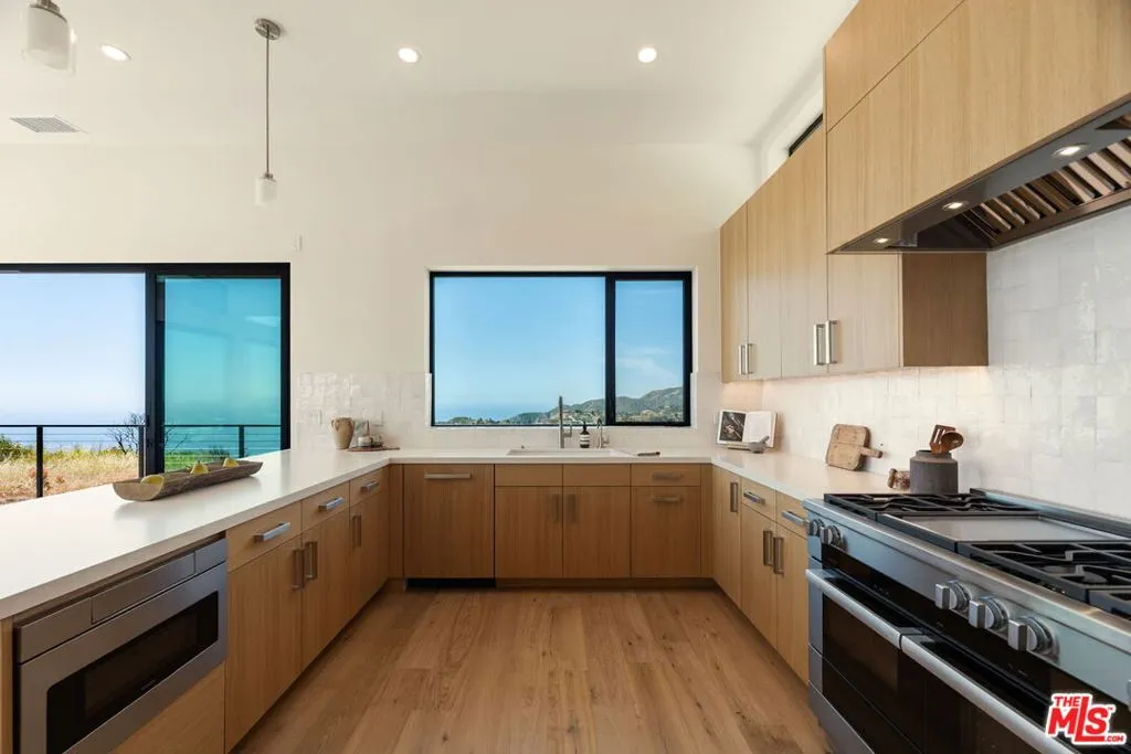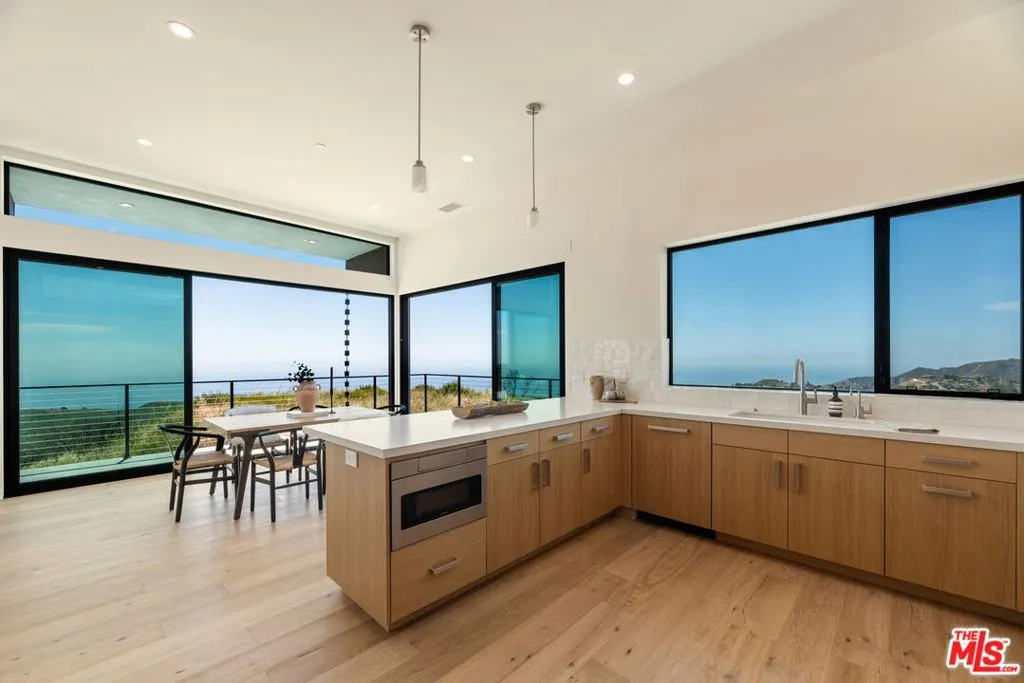 Welcome to your private sanctuary nestled in the serene Malibu canyon. This exceptional new construction Modern home, designed by renowned architect Vitus Matare, offers an unparalleled indoor-outdoor lifestyle with breathtaking ocean views from every room. Set on an expansive 42,916-square-foot lot, the residence seamlessly blends coastal elegance with the tranquility of its natural surroundings. Thoughtfully designed to maximize its setting, the home offers over 4,300 square feet of combined indoor-outdoor living, where the main living and dining areas open effortlessly onto a sprawling deck creating a true extension of the home and an ideal backdrop for entertaining or quiet moments overlooking the Pacific. At the heart of the home, a chef's kitchen is outfitted with state-of-the-art appliances and a discreet hidden pantry, combining sleek design with everyday functionality. The primary suite is a peaceful retreat, where you wake up to the sunrise over the canyon, complete with a spacious walk-in closet and a spa-like bathroom featuring a soaking tub, walk-in shower, and separate water closet. Downstairs, two additional bedroom suites each offer their own distinct perspectives of the ocean and surrounding canyon and mountain landscape, providing comfort and privacy for guests or family. A custom wine room tucked beneath the stairs adds a refined touch for collectors and entertainers alike. The outdoor experience is equally compelling. A shimmering pool anchors the lower level, accompanied by a versatile lounge space that can be enclosed to create a secondary family room, library, office, studio, or gym - tailored to your lifestyle. A sunset-facing seating area offers the perfect setting to unwind at the end of the day. Additional features include a two-car garage with EV charging, a long private driveway with ample additional parking, and a 10,000-gallon water tank providing added self-sufficiency. Tucked away in a peaceful canyon setting, the property offers a rare sense of seclusion and privacy, while remaining conveniently located just 15 minutes from Topanga, 15-20 minutes to the Pacific Coast Highway, and to The Commons at Calabasas. This is living at its finest - where nature, design, and modern comfort come together in perfect harmony.