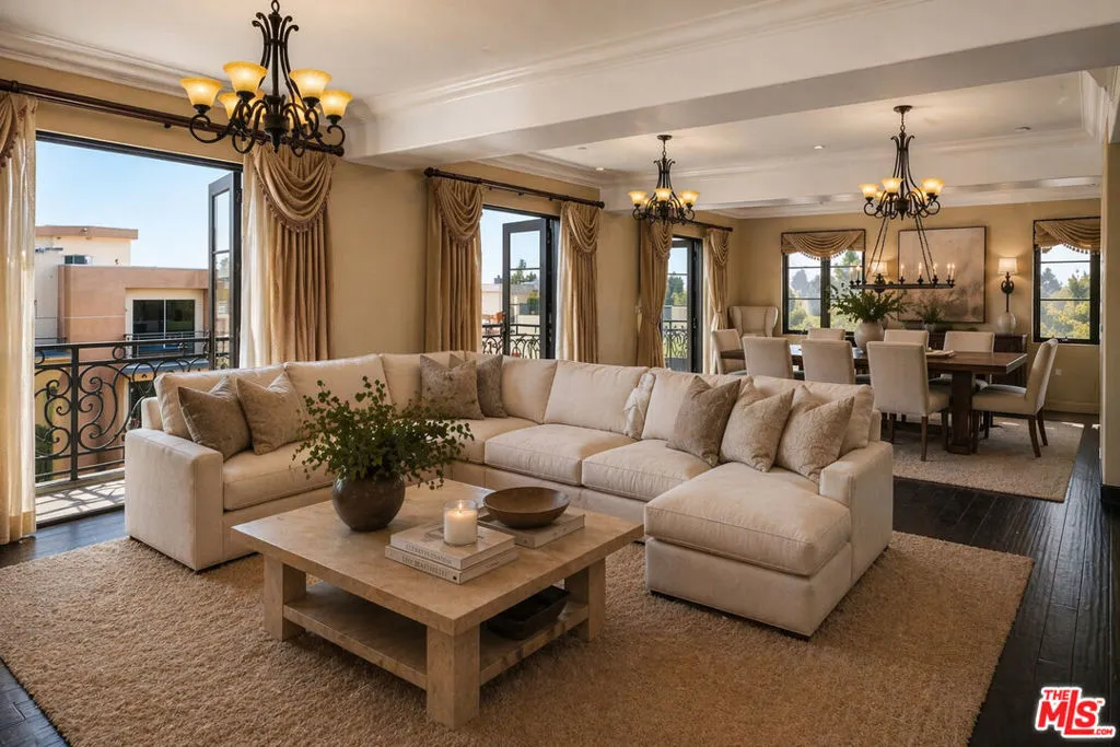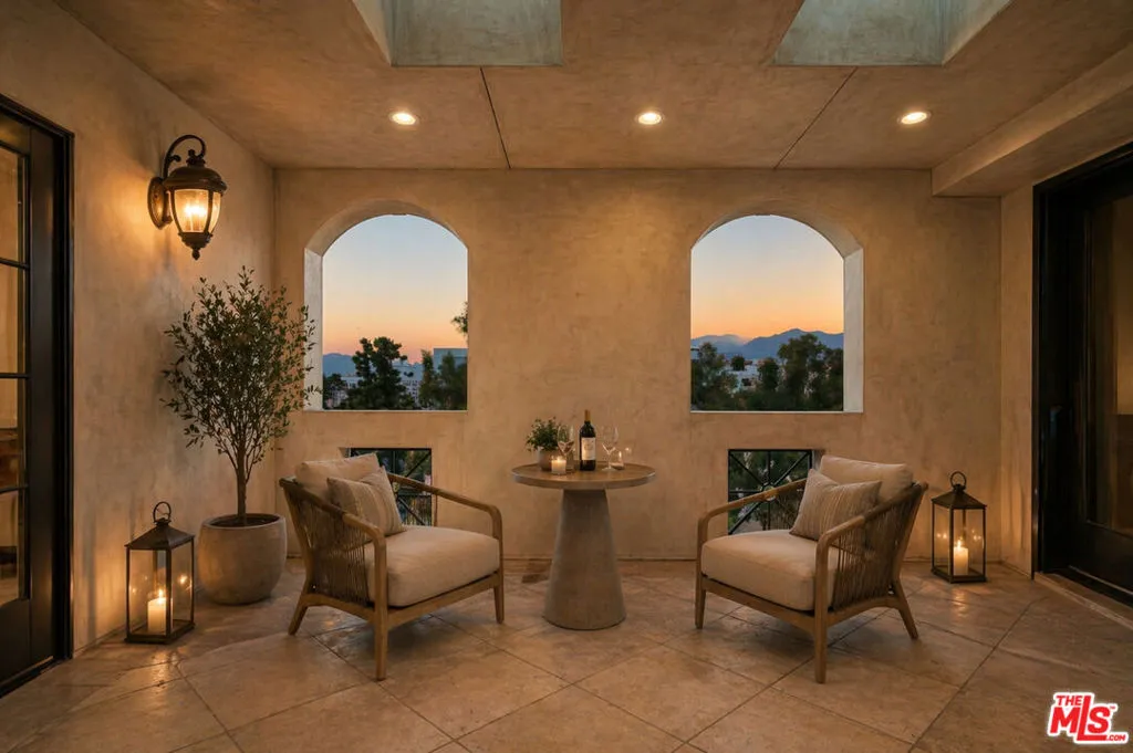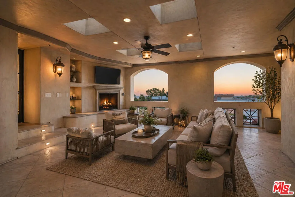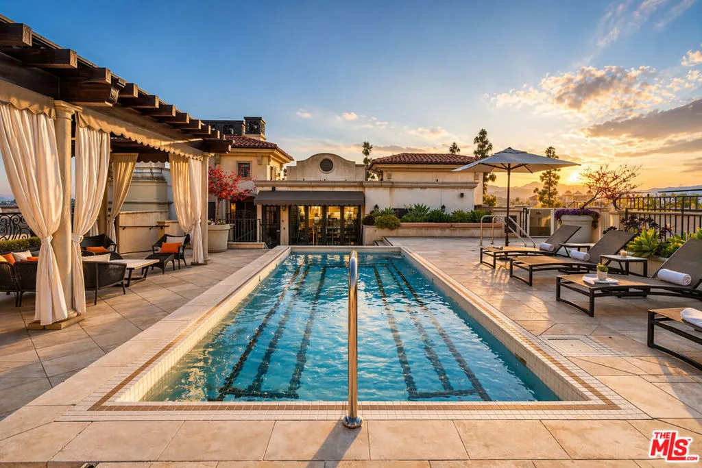 A truly rare two-story penthouse residence offering the privacy, scale, and presence of a single-family home set high above Pasadena with sweeping three-sided views. Accessed by a private elevator foyer, this exceptional home spans an elegant and thoughtfully designed layout with 3 bedrooms, 4 baths, and grand interiors curated for both sophisticated entertaining and everyday ease. The main level unfolds with expansive living and dining rooms, multiple fireplaces, and beautifully appointed gathering spaces designed for seamless hosting. At the heart of the home, a chef's kitchen is finished with premium Viking appliances, custom cabinetry, marble countertops, and stone tile floors - a functional open design equally suited for intimate dinners or large-scale entertaining. A full bedroom suite on this level offers the rare convenience of single-level living for guests or extended family. A private in-home elevator connects both floors. Rich hardwood floors, custom millwork, refined ceiling detail, and bespoke built-ins elevate the residence throughout. The upper level is dedicated to luxurious private living, featuring two expansive bedroom suites separated by a media lounge. The primary suite is a serene retreat with generous his and her walk-in closets, spa-caliber bath, and direct terrace access. An additional suite offers its own en-suite bath and private outdoor connection, creating an ideal guest sanctuary. Multiple private terraces extend the home into the open air, including a covered south-facing entertaining terrace with fireplace, lounge seating, bar, and panoramic city views - an extraordinary setting for sunset cocktails or evenings under the California sky. One of the residence's most coveted features is its rare direct access connection to the rooftop amenities level. Enjoy a resort-style pool and spa, cabanas, fitness center, outdoor kitchens, fire features, and commanding skyline vistas. Offered furnished, this penthouse also includes advanced home technology, secure parking access, designated storage space in the garage, and the premier lifestyle of Terra Bella. Perfectly positioned moments from Pasadena's most treasured destinations, including acclaimed dining and shopping in Old Pasadena, The Paseo, and the world renowned Rose Bowl Stadium.