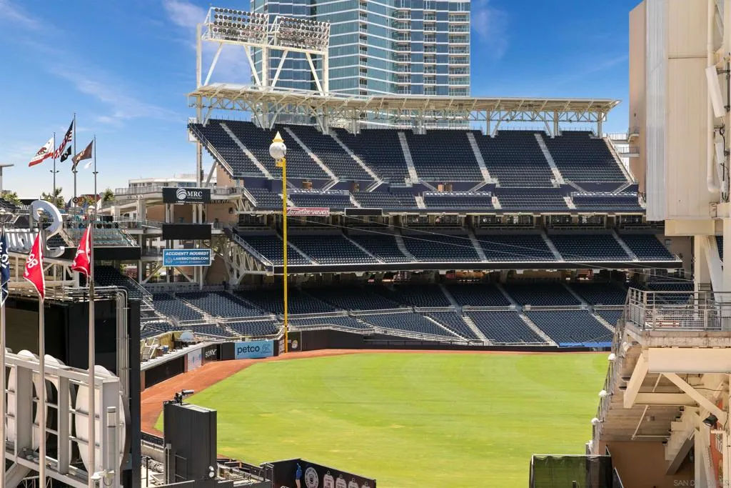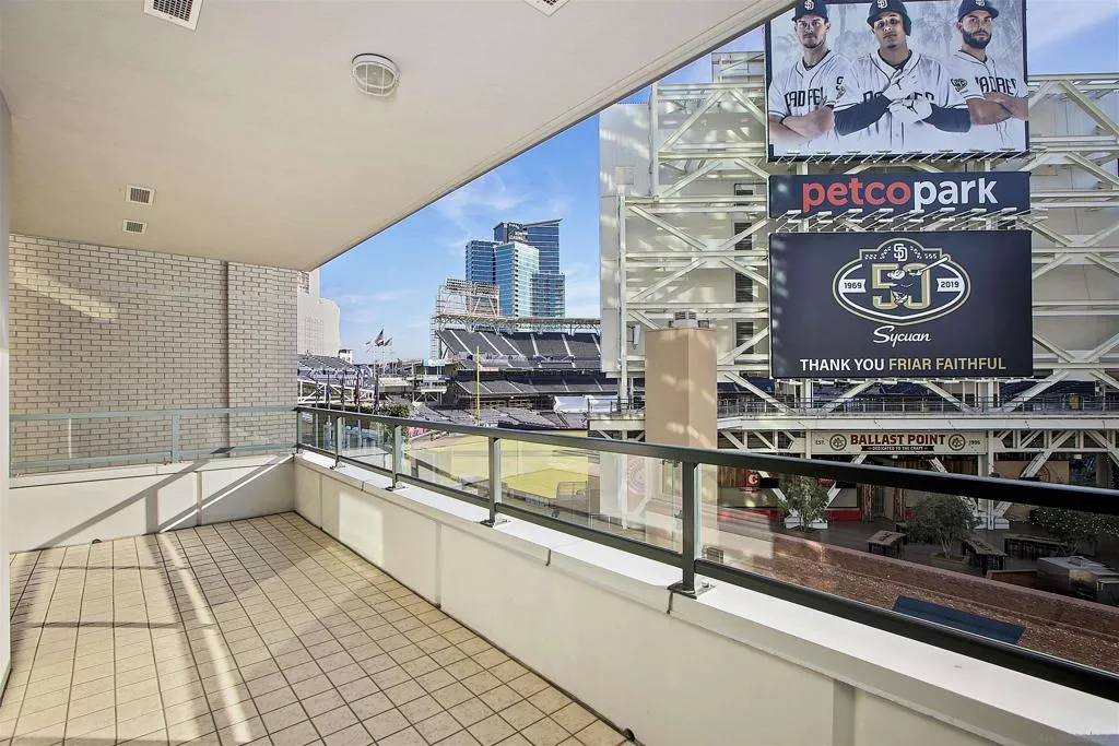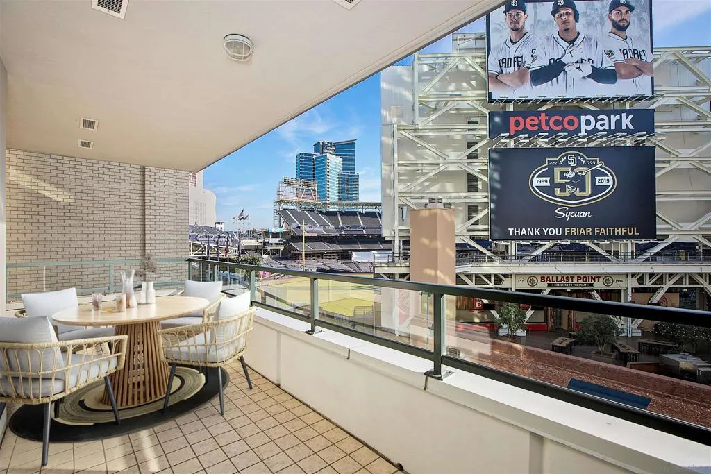 Step into unparalleled luxury with this beautifully upgraded condo featuring brand new floors and fresh paint. The expansive wrap-around balcony provides stunning views of the ballpark, allowing you to enjoy the entire season from the comfort of your home. Situated in a prime location next to one of the few parks in the area, this turn-key residence boasts top-of-the-line finishes, including wood flooring, granite countertops, stainless steel appliances, and solar shades. Additional amenities include extra storage, a steam/sauna room, and a pool. The exclusive 3200 sq. ft. rooftop lounge offers direct views into the ballpark, making it an ideal spot for entertaining. This condo also features a spacious L-shaped patio, significantly enhancing the living space. The removal of the fireplace allows for a more versatile furniture layout. Don't miss the chance to live in luxury at The Legend, where you can experience the thrill of the ballpark season right from your home.