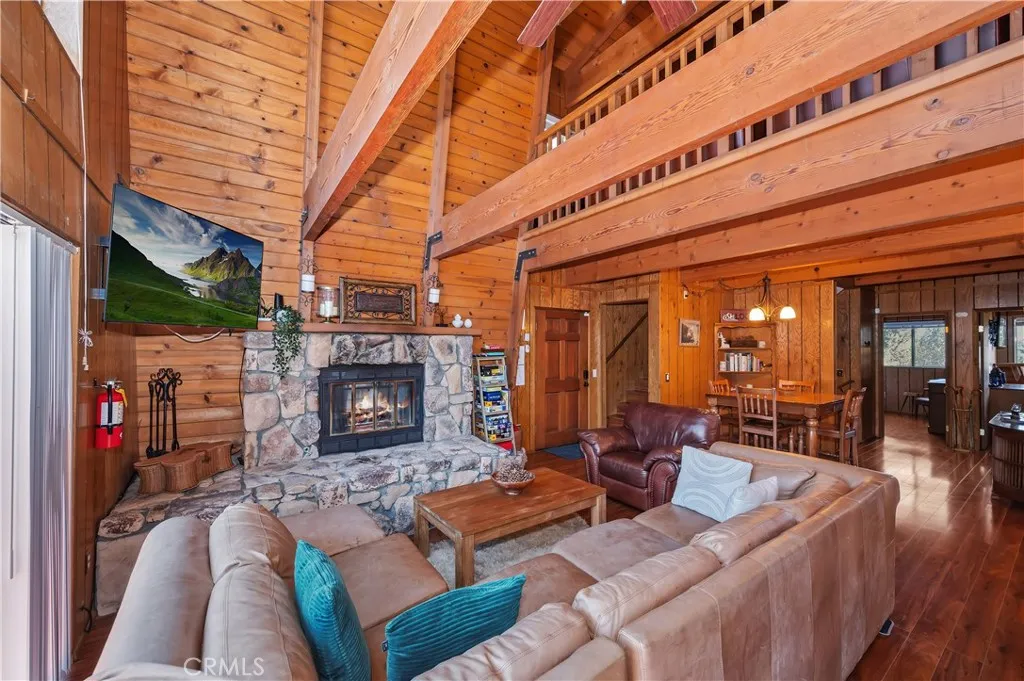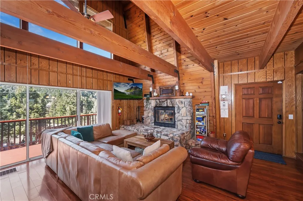 Welcome to your mountain escape on the coveted north side of Big Bear Valley, where adventure, serenity, and investment potential come together in one exceptional property ~ Located in one of the area’s most desirable neighborhoods, Whispering Forest ~ This home places you just minutes from everything that makes Big Bear so special ~ Enjoy easy access to scenic trails in the National Forest, spend sunny summer afternoons along the Alpine Pedal Path, launch the boat at Big Bear Lake East Boat Ramp or head over to Big Bear Snow Play in the winter months and enjoy the Big Bear Lake Convention Center just down the road for year-round fun. The slopes of Snow Summit and Bear Mountain are just a short drive away ~ Inside the home, the spacious open-concept design is highlighted by soaring vaulted ceilings and a dramatic wall of windows that frame the surrounding natural beauty ~ A stunning stone fireplace creates the perfect setting to gather and unwind on crisp mountain evenings ~ The versatile loft adds additional living space, while four enclosed bedrooms and three bathrooms provide comfort and flexibility for hosting family and guests ~ The home has been thoughtfully updated with granite countertops and stainless steel appliances & EV charging port ~ modern convenience with classic charm ~ Step outside to a wraparound deck offering panoramic views ideal for morning coffee while the sun peaks over the mountains or evening sunsets ~ The fenced backyard provides privacy and includes a spa, perfect for relaxing after a day of hiking, skiing, golfing or exploring all that Big Bear has to offer ~ Currently operating as a successful short-term rental, this property is an incredible opportunity as both a personal retreat and an income-producing investment ~ With grocery stores, dining, and daily essentials just minutes away, convenience meets mountain living in the best way ~ Come experience the lifestyle you’ve been dreaming of ~ This is Big Bear living at its finest.