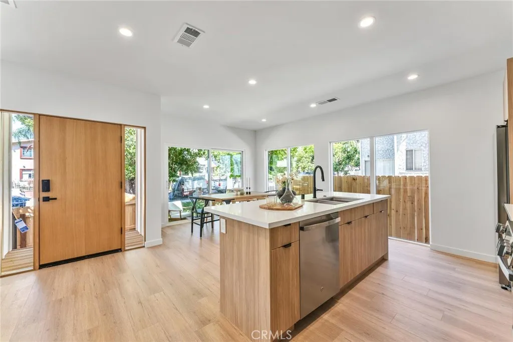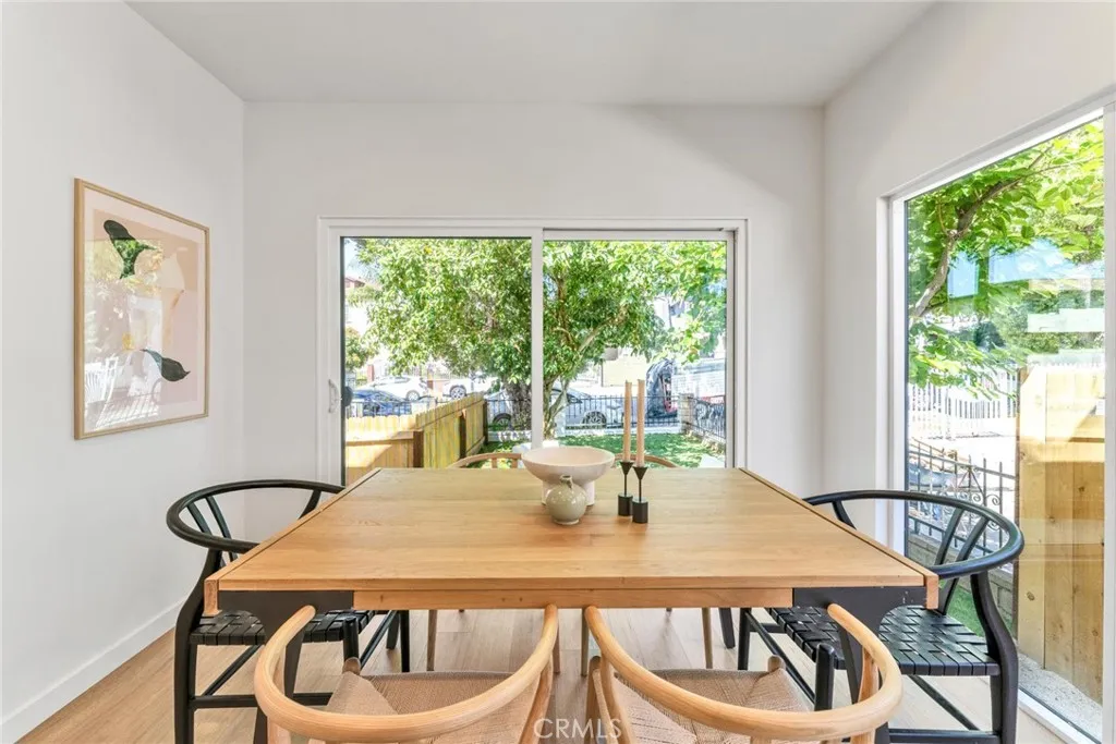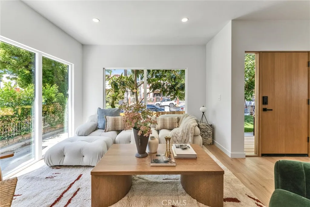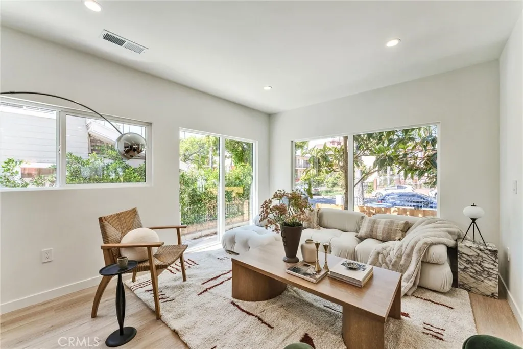 This newly rebuilt 3-bedroom, 3.5-bath, two-story townhouse blends clean design with effortless indoor-outdoor flow in the heart of Los Feliz / East Hollywood. Tucked along a quiet, tree-lined street, the home offers privacy, curated finishes, and a relaxed yet elevated LA vibe. The main level is bright and open, with oversized windows and a sliding glass door that flood the space with natural light and create a seamless connection to the outdoors. White oak floors, custom oak cabinetry, and a beautifully appointed kitchen set a warm, modern tone. Thoughtfully designed with dual primary suites—one on the main level and one upstairs—the layout offers flexibility, privacy, and comfort for modern living. A sleek powder room and in-unit laundry complete the first floor. Upstairs, the second primary suite feels like a private retreat, featuring skylights, soft treetop views, a spacious walk-in closet, and a beautifully finished bathroom with a generous walk-in shower. A third bedroom and a separate full bath provide additional versatility for guests, work, or creative space. Outdoor living is a true highlight. The private front yard, anchored by a mature guava tree, creates an inviting setting for morning coffee, sunset lounging, or intimate gatherings, while two dedicated parking spaces and a shared fenced yard add everyday ease and a strong sense of place. Modern, warm, and effortlessly cool—this is Los Feliz / East Hollywood living at its best, just moments from some of LA’s favorite cafés, restaurants, and neighborhood hotspots. *This is a TIC (Tenancy in Common) sale*