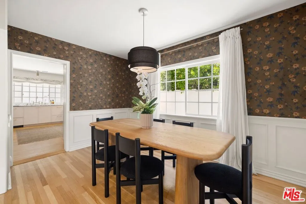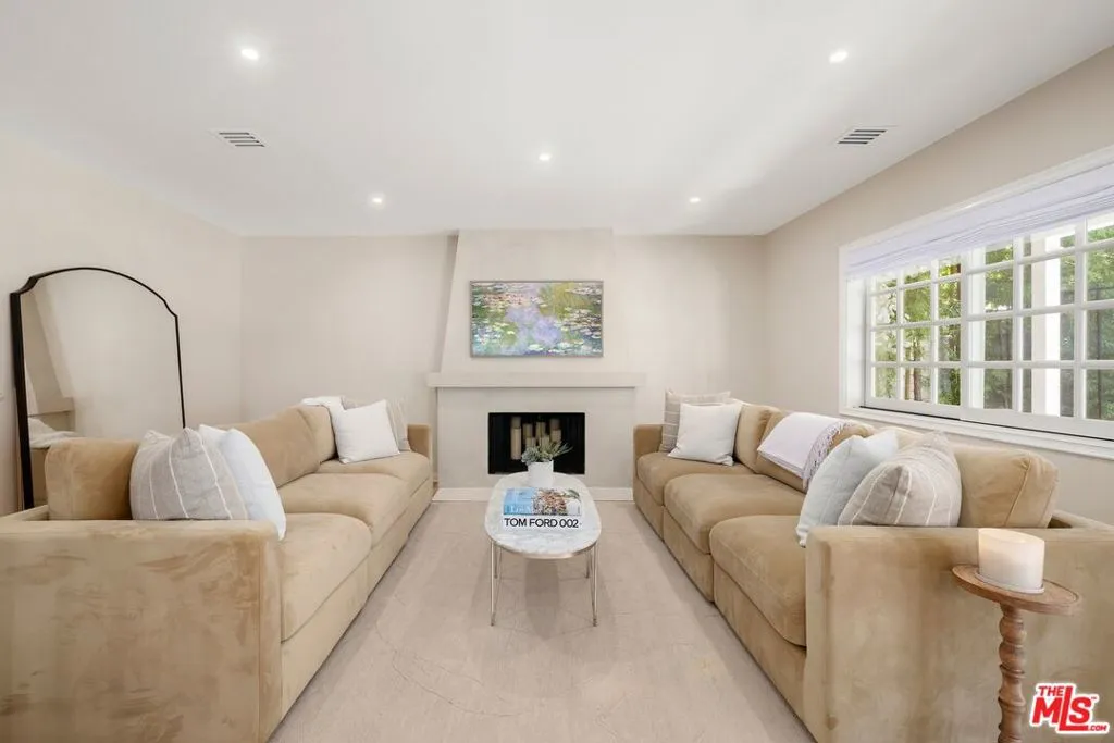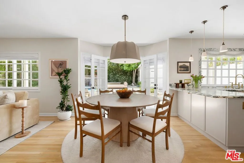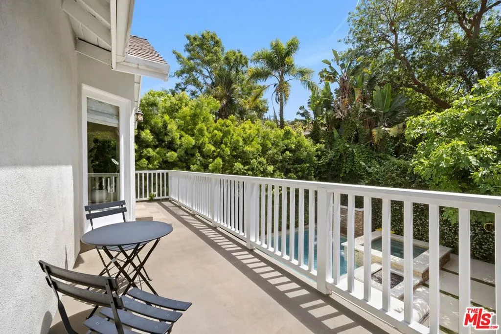 Set on a rare cul-de-sac South of Ventura Boulevard, 14640 Tustin is a designer-refreshed Sherman Oaks Traditional that blends timeless architecture, elevated finishes, and true California indoor-outdoor living. Framed by mature trees on a quiet residential street, the home offers a private, tucked-away setting moments from Ventura Boulevard's restaurants, cafs, boutiques, shopping, fitness studios, and everyday conveniences. Inside, the home feels warm, refined, and beautifully layered. Refinished hardwood floors, limewashed walls, designer wallpaper, and curated lighting create an elegant yet comfortable atmosphere throughout. A large picture window brings in natural light and captures the peaceful tree-lined street, while the living and dining areas flow effortlessly across the main level for everyday living and entertaining. The newly remodeled kitchen is a true centerpiece, featuring a statement La Cornue double oven with five-burner range, marble surfaces, a built-in paneled Dacor French-door refrigerator/freezer, appliance garage, Fisher & Paykel two-drawer dishwasher, and Farrow & Ball painted cabinetry . The home offers four bedrooms and three baths across approximately 2,667 square feet, with three bedrooms upstairs and one bedroom downstairs, ideal for guests, office, playroom, or flexible living. The oversized primary suite features vaulted ceilings, a large walk-in closet, and French doors opening to a wraparound balcony overlooking the backyard. The remodeled primary bath is finished with Carrera marble, dual vanities, a large soaking tub, and an expansive shower. The secondary upstairs bathroom has also been updated with dual vanities and Carrera marble, while the downstairs bath has been thoughtfully refreshed. The backyard is designed for both relaxed everyday living and effortless entertaining, with a newer app-controlled pool and spa, built-in fire feature, covered outdoor patio with TV, low-maintenance landscaping, and mature greenery that creates privacy, shade, and a serene retreat-like feel. French doors connect the interior living spaces to the patio and pool, creating an easy indoor-outdoor rhythm. Beyond the pool, the detached two-car garage has been transformed into a versatile bonus space with rubber flooring, windows, and a glass door to the yard, making it ideal as a gym, pool house, studio, office, lounge, or creative flex space. With a 5,752-square-foot lot, driveway parking, flexible living spaces, designer upgrades, a newer pool and spa, and a coveted South of the Boulevard Sherman Oaks location, 14640 Tustin Street offers a polished, private, and highly functional home with character, sophistication, and a strong sense of California living.