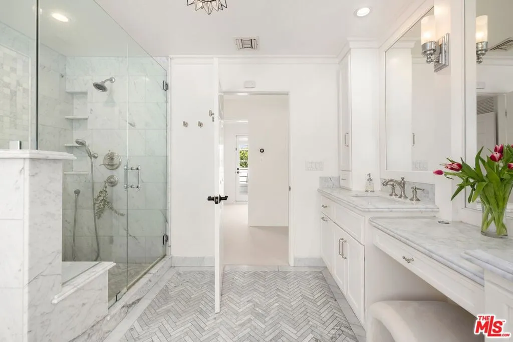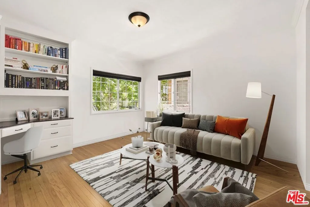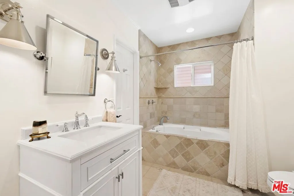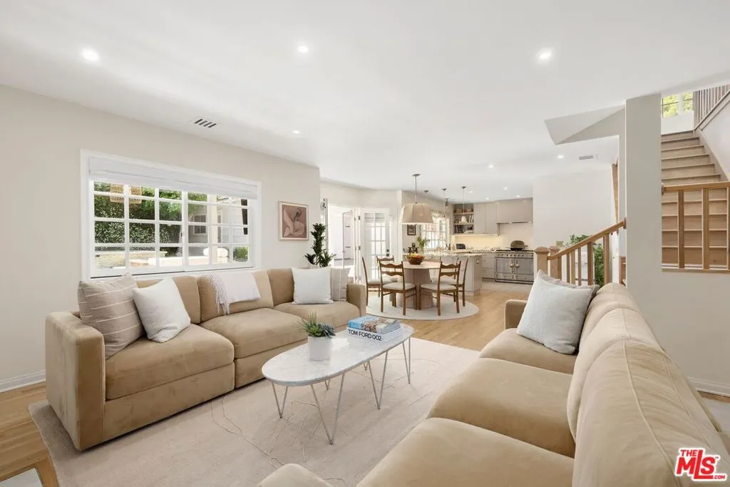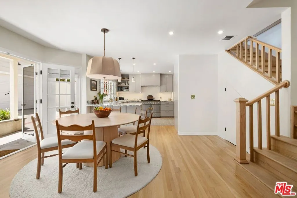 Set on a rare cul-de-sac South of Ventura Boulevard, 14640 Tustin is a designer-refreshed Sherman Oaks Traditional that blends timeless architecture, elevated finishes, and true California indoor-outdoor living. Framed by mature trees on a quiet residential street, the home offers a private, tucked-away setting moments from Ventura Boulevard's restaurants, cafs, boutiques, shopping, fitness studios, and everyday conveniences. Inside, the home feels warm, refined, and beautifully layered. Refinished hardwood floors, limewashed walls, designer wallpaper, and curated lighting create an elegant yet comfortable atmosphere throughout. A large picture window brings in natural light and captures the peaceful tree-lined street, while the living and dining areas flow effortlessly across the main level for everyday living and entertaining. The newly remodeled kitchen is a true centerpiece, featuring a statement La Cornue double oven with five-burner range, marble surfaces, a built-in paneled Dacor French-door refrigerator/freezer, appliance garage, Fisher & Paykel two-drawer dishwasher, and Farrow & Ball painted cabinetry . The home offers four bedrooms and three baths across approximately 2,667 square feet, with three bedrooms upstairs and one bedroom downstairs, ideal for guests, office, playroom, or flexible living. The oversized primary suite features vaulted ceilings, a large walk-in closet, and French doors opening to a wraparound balcony overlooking the backyard. The remodeled primary bath is finished with Carrera marble, dual vanities, a large soaking tub, and an expansive shower. The secondary upstairs bathroom has also been updated with dual vanities and Carrera marble, while the downstairs bath has been thoughtfully refreshed. The backyard is designed for both relaxed everyday living and effortless entertaining, with a newer app-controlled pool and spa, built-in fire feature, covered outdoor patio with TV, low-maintenance landscaping, and mature greenery that creates privacy, shade, and a serene retreat-like feel. French doors connect the interior living spaces to the patio and pool, creating an easy indoor-outdoor rhythm. Beyond the pool, the detached two-car garage has been transformed into a versatile bonus space with rubber flooring, windows, and a glass door to the yard, making it ideal as a gym, pool house, studio, office, lounge, or creative flex space. With a 5,752-square-foot lot, driveway parking, flexible living spaces, designer upgrades, a newer pool and spa, and a coveted South of the Boulevard Sherman Oaks location, 14640 Tustin Street offers a polished, private, and highly functional home with character, sophistication, and a strong sense of California living.