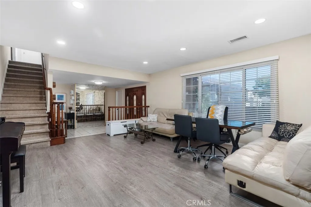 Welcome to this well-kept 4-bedroom, 3-bath home in the desirable Barkley Square community. The layout is practical and flexible, with a bedroom and a shower on the main level—ideal for guests or multi-generational living. Inside, you’ll find thoughtful updates like scraped ceilings, recessed lighting, double-pane windows, and central heating and air. The kitchen opens directly to the family room, creating an easy, connected space for both everyday living and gatherings. Upstairs, the additional bedrooms are comfortably sized, and the primary suite offers a quiet place to unwind. The backyard is designed for low maintenance, with mostly hardscaping and mature trees that add privacy. Located in Cypress, this home falls within the Oxford Academy boundary (testing required) and offers convenient access to the 605 and 91 freeways.