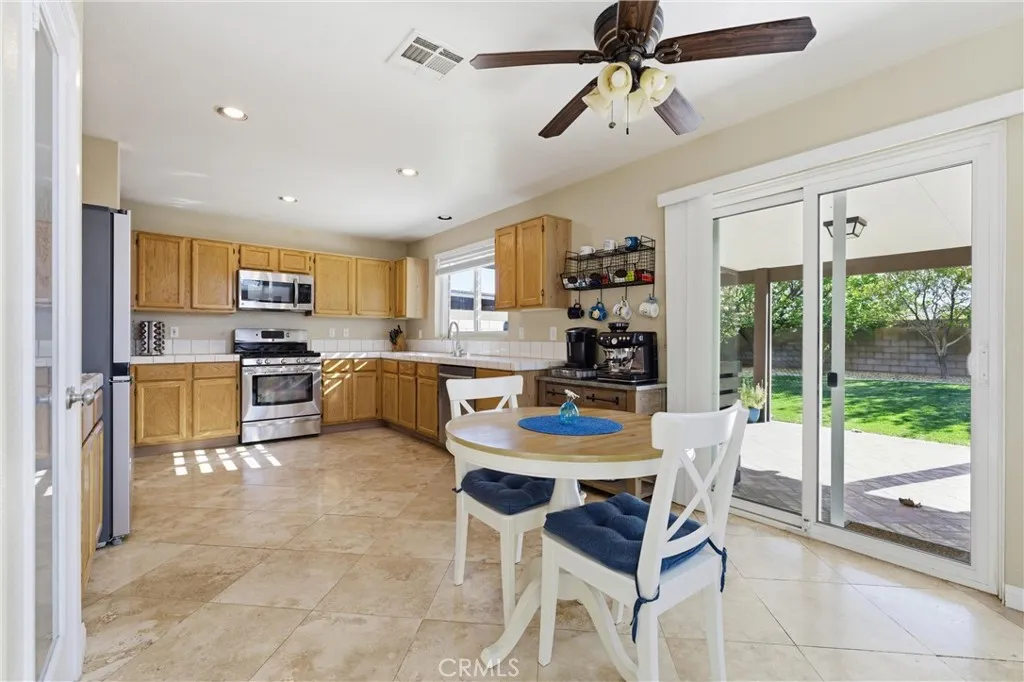Welcome to this impeccably maintained 2-story home in the heart of West Lancaster! This 4-bedroom, 3-bathroom residence radiates pride of ownership and is packed with high-value upgrades, including a solar system and beautiful new vinyl windows throughout. The curb appeal is immediate, with fully landscaped front and rear yards, a private front porch, and seating area accented by elegant wrought iron. Inside, the appealing floor plan greets you with huge vaulted ceilings and sophisticated 24-inch tile flooring that flows through the main living areas, all bathed in an abundance of natural light. Designed for both daily living and hosting, the home boasts multiple dining areas and a large kitchen featuring a walk-in pantry and extensive counter space. The massive primary suite serves as a true sanctuary, featuring an ensuite bathroom with a dual vanity and a large walk-in shower with a rain shower head. Three additional upstairs bedrooms--all featuring ceiling fans--share a well-appointed full guest bathroom. Practicality meets comfort with a large indoor laundry room complete with custom cabinets and an HVAC system replaced in 2019. The rear yard is a true entertainer's dream, featuring a custom brick patio protected by a full-length steel patio cover and mature trees. Best of all, there is enough parking for all your toys, including an oversized 3-car garage and paved, gated RV and boat parking! Perfectly located near premier shopping, elementary schools, and Quartz Hill High School, this ''ultra clean'' home is a must-see! Seller will consider all offers, including those requesting concessions.