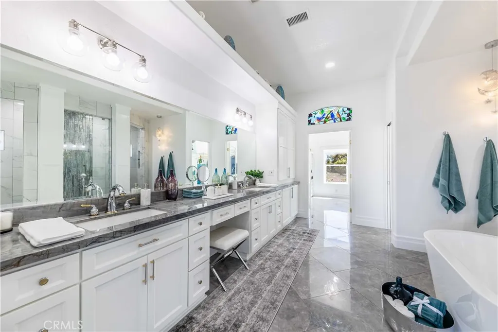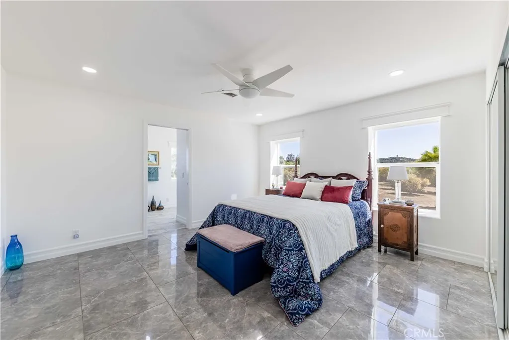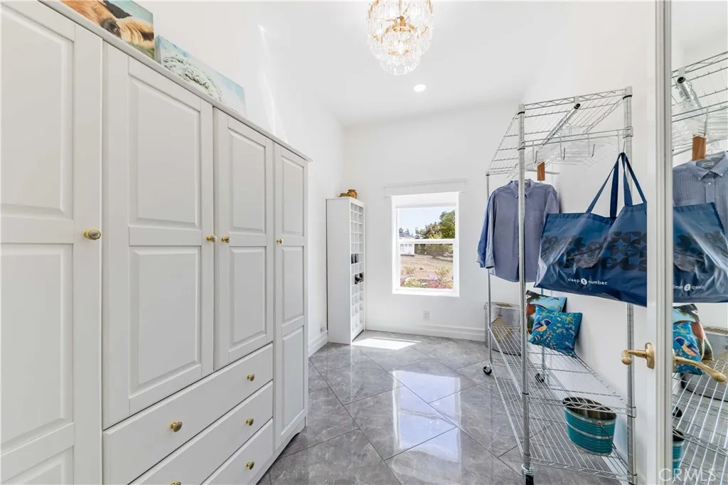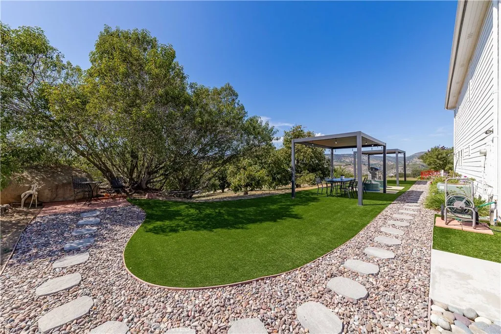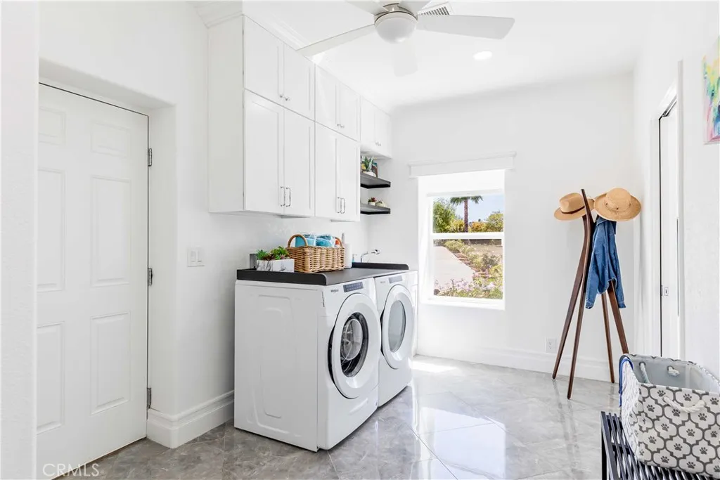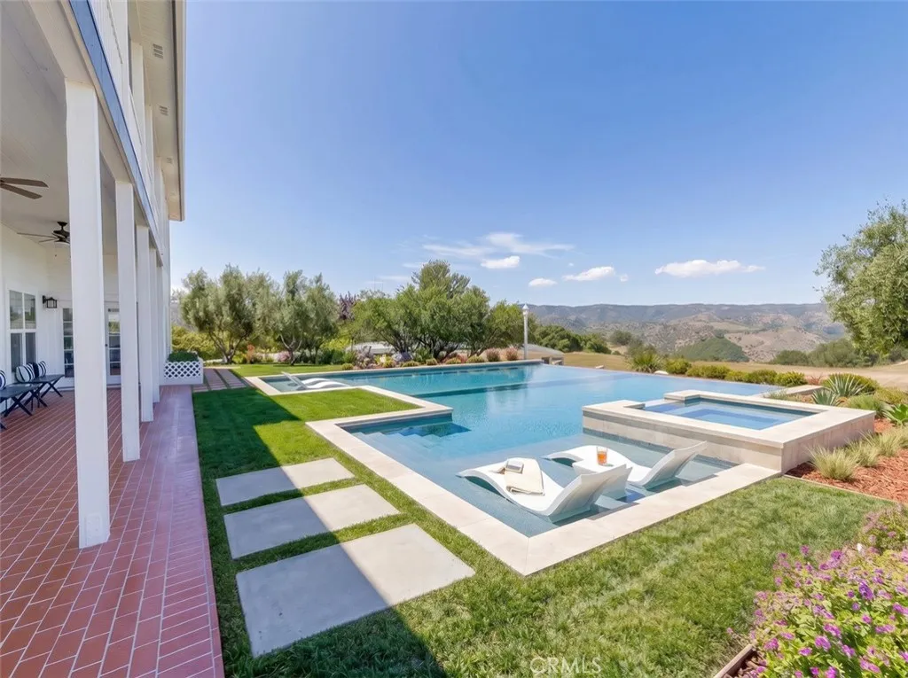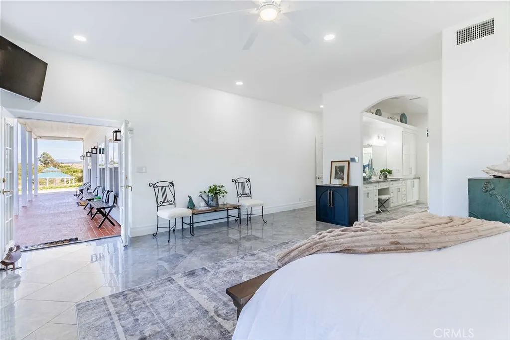 Perched atop a private hilltop in the prestigious De Luz hills, this extraordinary estate offers over 25 acres of breathtaking, panoramic views, unmatched privacy, and a lifestyle defined by tranquility and natural beauty. From the moment you arrive through one of three gated entrances, a picturesque, rose-lined driveway framed by mature avocado and palm trees sets the tone for what lies ahead. Constructed with energy-efficient eco-block construction, this residence offers superior insulation, durability, and year-round comfort—enhanced by the area’s signature ocean cooled breeze that gently flows across the property. Inside, soaring 20-foot ceilings and expansive windows flood the home with natural light while capturing stunning views from virtually every room. The thoughtfully designed floor plan features 4 bedrooms and 4 bathrooms, including a luxurious downstairs primary suite with dual vanities, soaking tub, dual-head shower, and custom walk-in closets. A secondary upstairs suite, large loft, and multiple view decks provide flexible living and entertaining spaces. At the heart of the home, the gourmet kitchen is equipped with premium Viking appliances, including a six-burner range, built-in refrigerator, microwave, hood, and additional KitchenAid upgrades. Quartzite countertops, a large center island with custom wine storage, walk-in pantry, and abundant cabinetry make this space as functional as it is beautiful. Seamless indoor-outdoor living is highlighted by multiple entertaining areas, including expansive balconies, pergolas, gazebos, BBQ area, and manicured turf spaces. The grounds offer exceptional usability with room for equestrian use, agriculture, or future enhancements such as a pool or guest expansion. A detached garage with RV access and full bath adds versatility. Additional highlights include polished porcelain tile flooring, designer gold-accented fixtures, two gas fireplaces, a custom mudroom with full bath, and a built-in under-stair pet retreat. The property features multiple fruit trees, mature avocado production potential, extensive hardscape with stone walkways, and low-maintenance landscaping. Concrete siding enhances durability, while abundant storage and thoughtful built-ins add everyday functionality. This rare offering combines luxury, land, and lifestyle—just minutes from Old Town Temecula and Temecula Wine Country—creating a truly one-of-a-kind opportunity in one of Southern California’s most coveted rural communities.