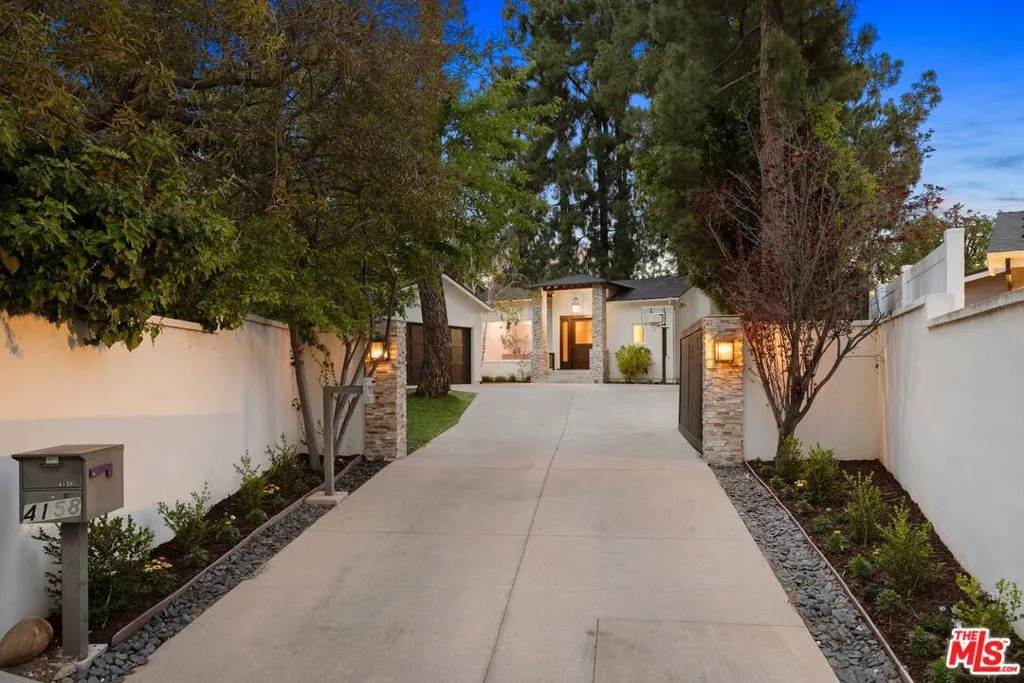 Tucked at the end of a quiet cul-de-sac in one of Encino's most coveted hillside settings, 4158 Adlon Place is a gated architectural retreat that blends privacy, scale, and understated luxury. Set on over half an acre, the property unfolds with a sense of arrival, anchored by a generous motor court and surrounded by natural hillside beauty. Spanning approximately 6,400 square feet, the home lives primarily on one level with a seamless, open flow designed for both everyday living and elevated entertaining. Soaring ceilings and gallery-like walls create volume and presence, while walls of glass flood the interiors with natural light and open effortlessly to the outdoors. The layout is thoughtfully designed, separating public and private spaces, with expansive living areas that connect to a clean, modern kitchen. Outside, a resort-style setting takes over, featuring a large pool, outdoor loggia with fireplace, and multiple lounge areas that feel like a private escape. With five bedrooms and six bathrooms, including a spacious and secluded primary suite, the home offers flexibility without compromise. Located in a discreet, celebrity-favored enclave with easy access to the Westside, this is Encino living at its most refined private, architectural, and quietly unforgettable.