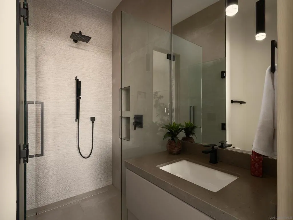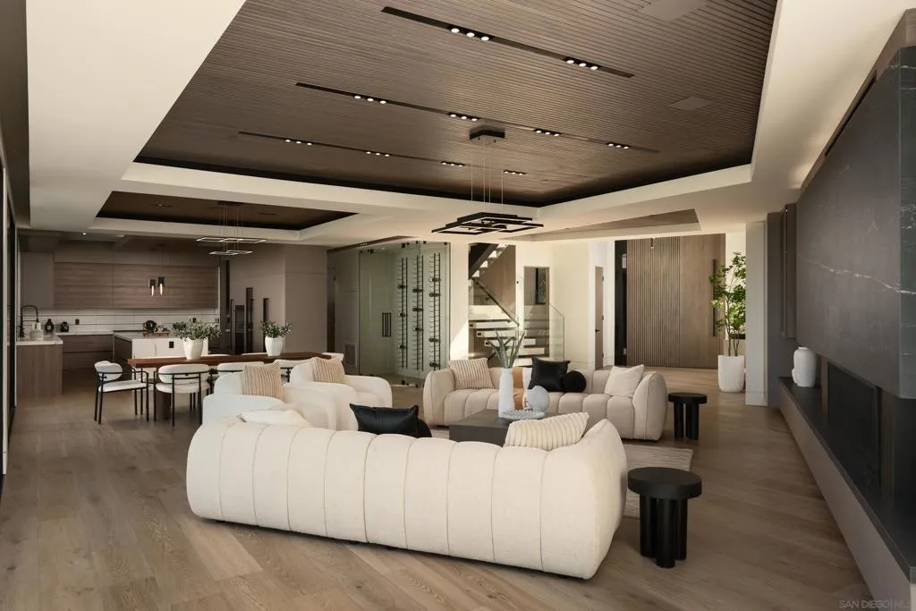 Perched on a premier site within La Jolla’s coveted Muirlands enclave, this newly built contemporary estate is an architectural study in elevation, light, and privacy. From its commanding position, the residence captures sweeping, uninterrupted views of the Pacific Ocean, rolling golf greens, and the city skyline, forming a dramatic backdrop that defines every living space. The home is composed around a highly intentional layout, balancing grand volume with refined intimacy. Seven private bedroom suites, each with its own spa like bath are thoughtfully distributed for discretion and flexibility, including dual primary suites on separate levels, ideal for buyers seeking both privacy and hosting versatility. A bespoke interior palette of custom materials and clean modern lines underscores the home’s architectural clarity. At its center, a chef’s kitchen appointed with Wolf and Sub-Zero anchors expansive living spaces wrapped in walls of glass, dissolving boundaries between interior and horizon. Designed for seamless living, the residence includes elevator access, dual laundry rooms, and a substantial multi-vehicle garage, all integrated without compromise to form or function. Outdoors, the property unfolds as a private coastal retreat, where an infinity edge pool, fire pit, and outdoor kitchen hover above the landscape, curated for elegant entertaining and complete seclusion. With additional guest and entertainment spaces and a setting of rare prominence, this is a globally relevant offering, an estate defined by bold architectural imagination, exceptional views, and the quiet confidence of true luxury. Opportunities of this distinction in the Muirlands are exceedingly rare.