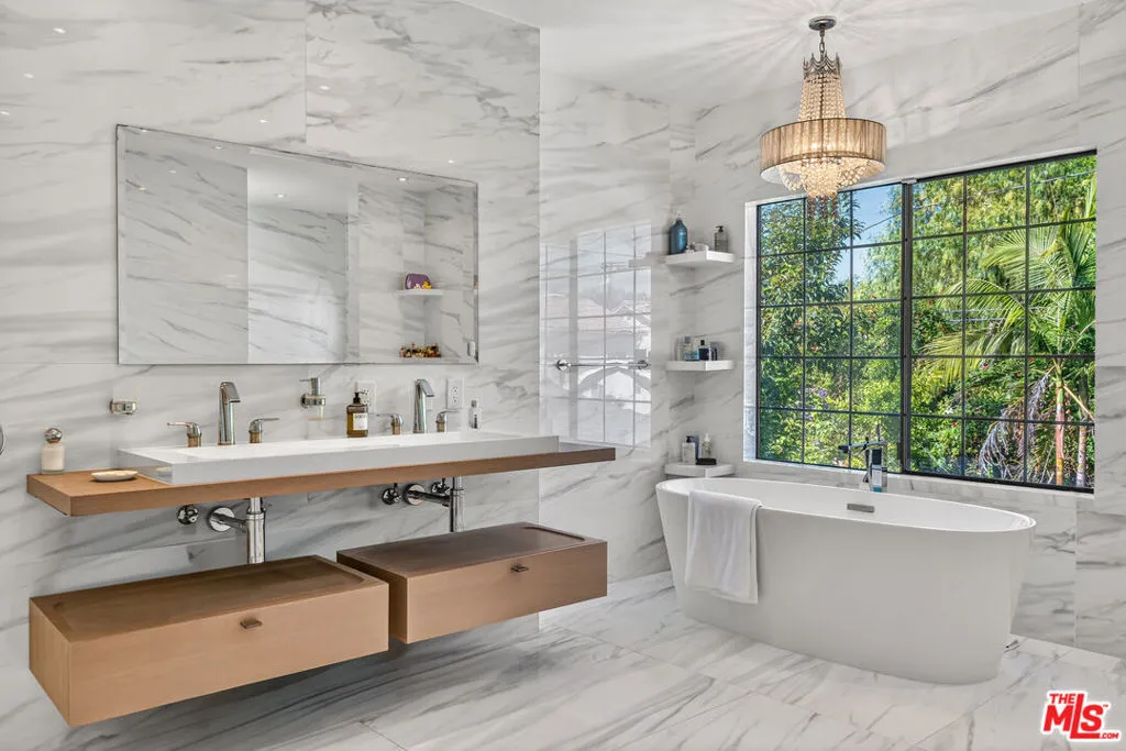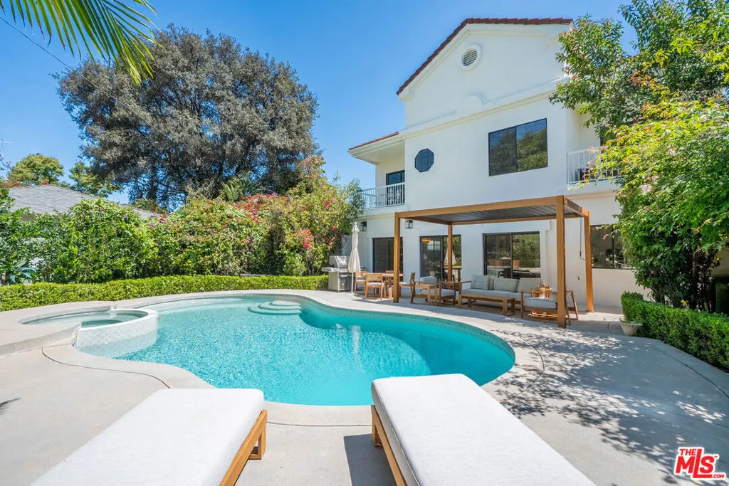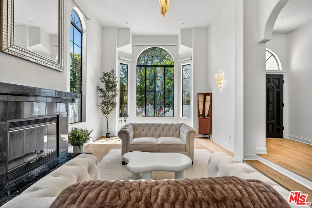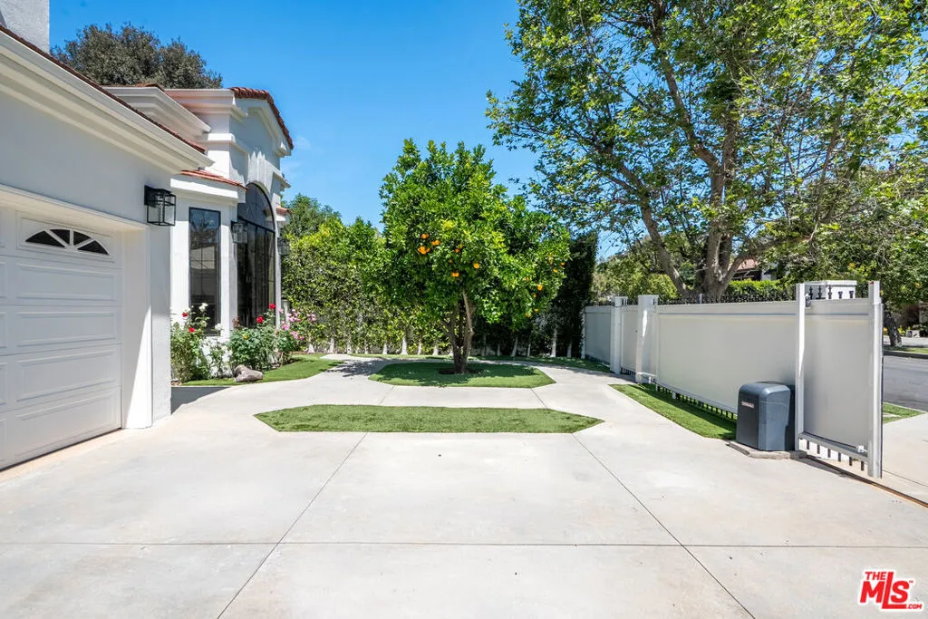 Beautifully updated residence in a prime Sherman Oaks location, offering privacy, scale, and a refined, modern aesthetic. Privately gated and surrounded by mature trees, the home sits just moments from Ventura Boulevard's premier shopping and dining, with access to top-rated public and private schools.Inside, the home features high ceilings and an open, light-filled layout designed for both everyday living and entertaining. The main living spaces flow seamlessly, highlighted by a step-down formal living room with a marble fireplace and soaring 15-foot ceilings. A brand new kitchen showcases marble finishes, sleek cabinetry, and opens to expansive living and dining areas.The home offers dual primary suites, each with newly renovated, floor-to-ceiling marble bathrooms, creating a true spa-like experience. Thoughtful design and quality finishes are carried throughout.