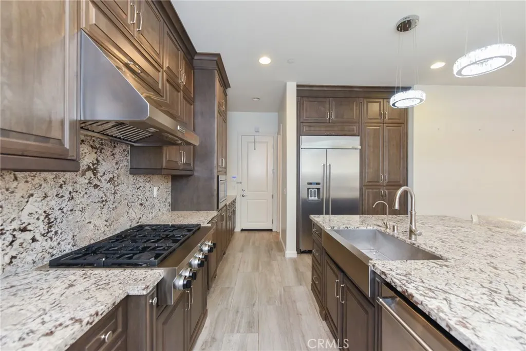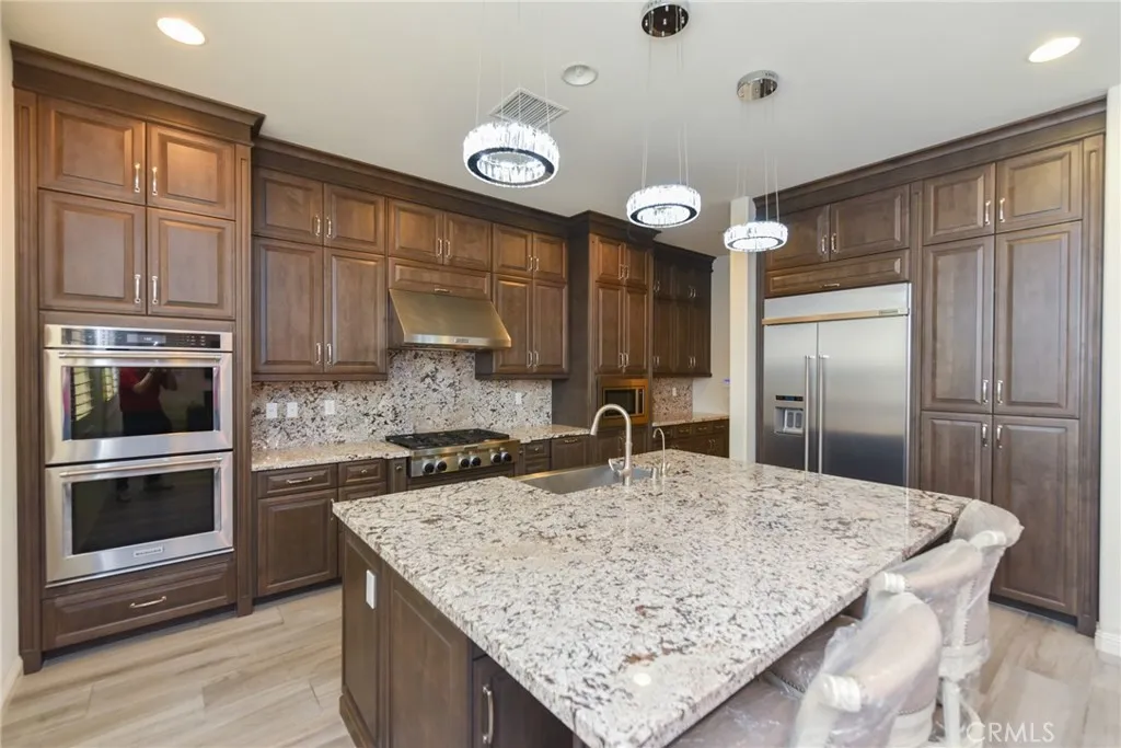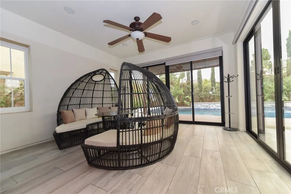 MUST SEE Fabulous partially furnished 5 beds/4.5 baths Toll Brother home with luxury outdoor living space including private pool & spa and waterfall, located in the award-winning community of Baker Ranch. This move-in-ready home features an upgraded gourmet kitchen with KitchenAid stainless steel appliances, a built-in double oven, and granite countertops. The enclosed California room opens to the huge backyard with a waterfall(coming from the patio), pool, spa, fire pit, and BBQ island. There is also an en-suite guest room on the main floor. An elegant spiral staircase leads you to an amazing loft and laundry room on the second level. The master suite comes with a large and comfortable bonus room and a luxury master bathroom. Numerous upgrades include luxurious crystal chandeliers, designer tile and backsplash, wood floors, custom paint, plantation shutters, recessed lights, and so on. Enjoy award-winning Saddleback School and the amazing amenities of Baker Ranch such as resort-style pools, parks, trails, tennis courts, and more.