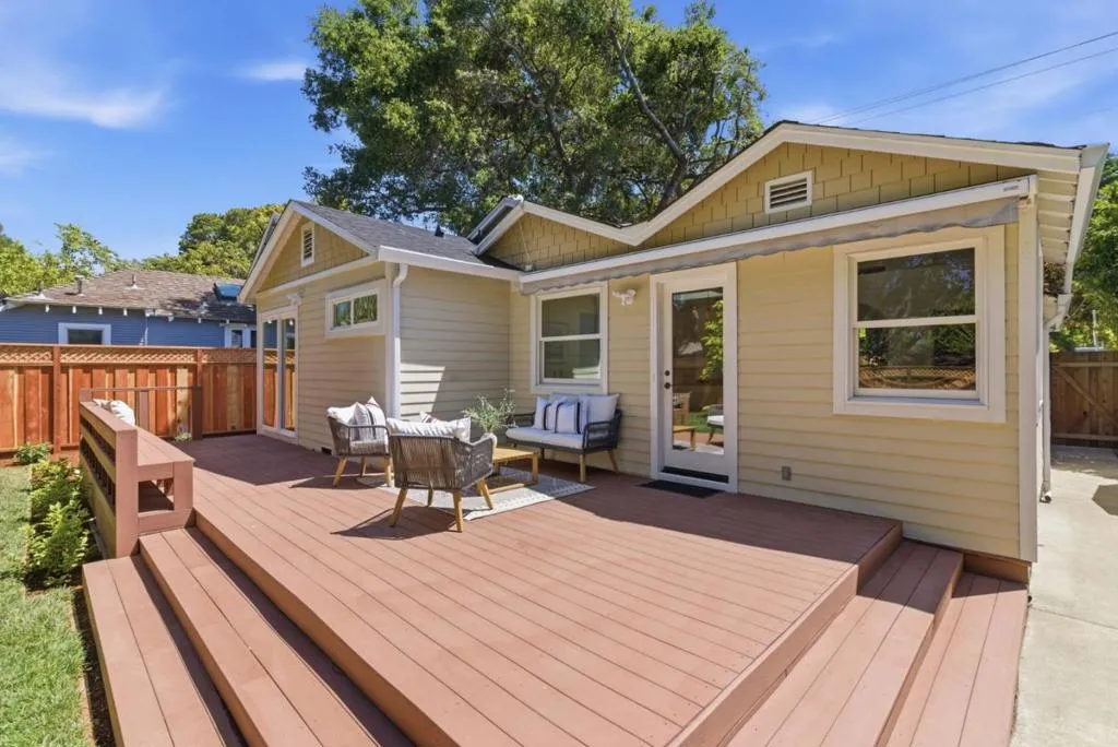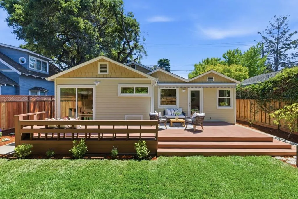 Ideally situated in the heart of Downtown Mountain View, this charming 2 bedroom, 2 bathroom home with a convenient bonus room offers an exceptional blend of comfort, style, and location. Just moments from Castro Street, the library, parks, dining, the post office, and the train station, the home provides easy access to everything while remaining peacefully tucked away. The inviting curb appeal feels straight out of a storybook, featuring a beautiful blue front door, stone walkway, and thoughtfully designed landscaping. Inside, the home is filled with natural light and features a spacious living room and a large dining area off the kitchen with views of the backyard, creating a functional and inviting layout for everyday living and entertaining. The spacious primary suite offers custom closets, a beautifully designed bathroom with a large shower, and a sliding door that opens directly to the backyard. Step outside to a park like setting with lush greenery and a large deck, perfect for relaxing or entertaining. Enjoy a vibrant lifestyle with nearby farmers markets, summer concerts, and local events, all within a neighborhood known for its strong sense of community and charm. Award winning schools complete the appeal of this exceptional property.
