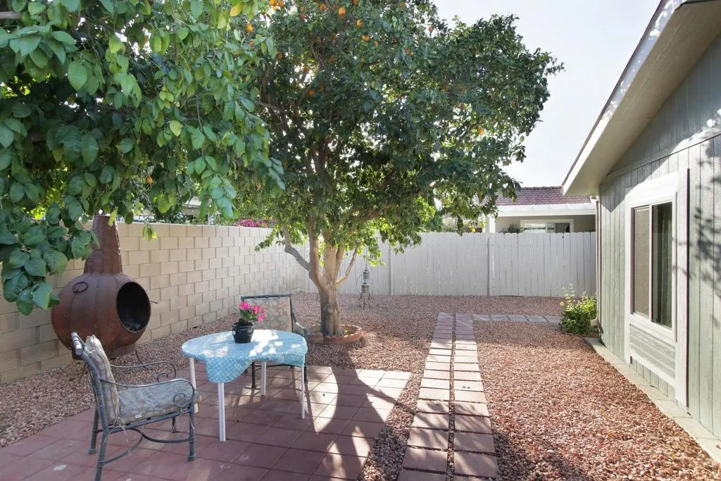 Charming 3BD, 2BA in Desert Grove 55+ Community. Built in 1989, you own the land with low HOA at only $265 per month. Nestled in one of the most desirable neighborhoods, this beautifully maintained 3-bedroom, 2-bathroom home offers the perfect blend of comfort, convenience, and community living. Designed for ease and enjoyment, this property boasts a spacious, open floor plan filled with natural light. Welcome home to your detached 2 car garage, huge back & side yards with low maintenance landscaping and custom masonry, Alumiwood patio cover off main living area, wood laminate flooring, granite counters, and split floor-plan. A perfect home or rental in a prime location. Unit 70 is move in ready! This is a gem of a property and wont last long on the market. See it as soon as possible.Situated just minutes from top shopping centers, grocery stores, dining options, and healthcare facilities, you'll enjoy the convenience of having everything you need right at your doorstep. Easy access to major roadways makes exploring nearby attractions a breeze.