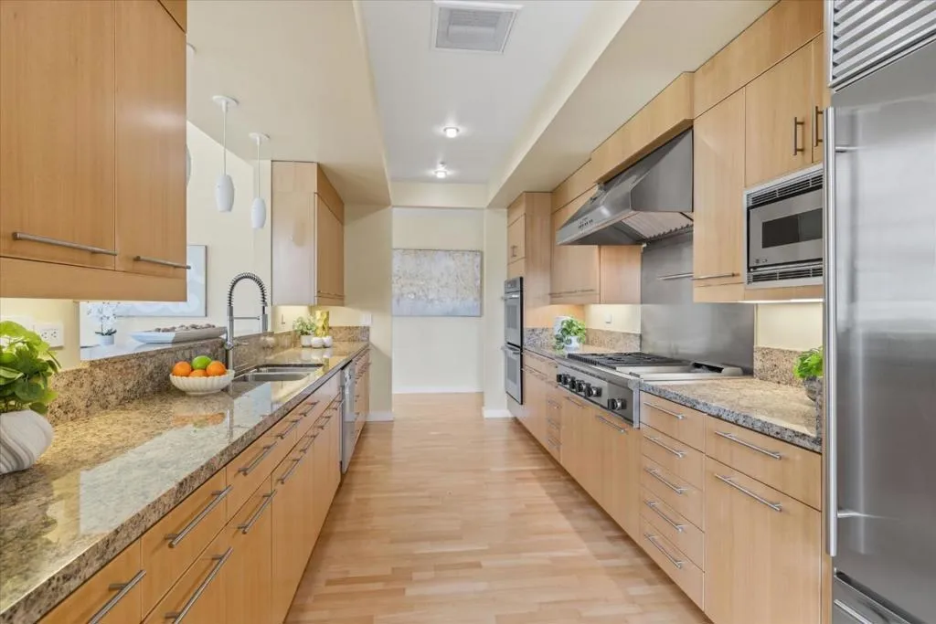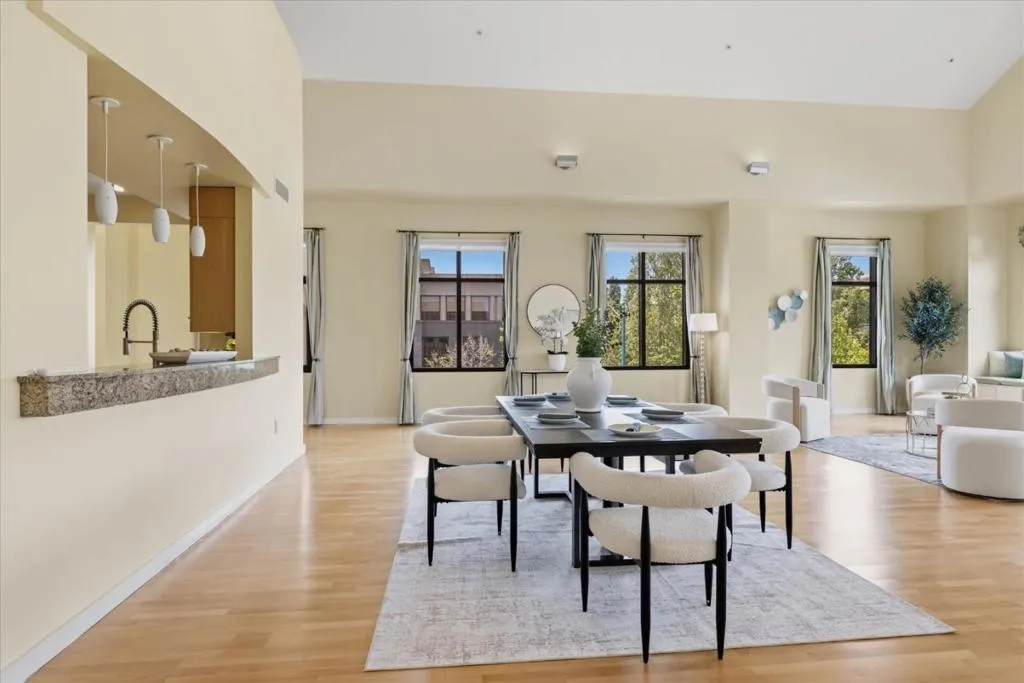 Welcome to the pinnacle of urban sophistication in the prestigious Park Place at Bay Meadows. This rarely available corner unit is the largest floor plan in the complex, offering an unparalleled blend of scale, luxury, and natural light. The heart of the home is an expansive living room defined by dramatic two-story ceilings and massive windows that create a bright, airy sanctuary perfect for both grand entertaining and quiet relaxation. The modern open floor plan flows seamlessly into a gourmet chefs kitchen, which features high-end stainless steel appliances, professional-grade range, sleek cabinetry, and sprawling granite countertops with a convenient breakfast bar. Elegant finishes throughout include beautiful hardwood-style flooring and a thoughtful custom built-in window seat ideal for enjoying your morning coffee. Living at Park Place offers a lifestyle of unmatched convenience with premier amenities right at your doorstep. Located directly above Whole Foods Market, Peets Coffee, and a curated selection of popular restaurants, everything you need is just an elevator ride away. This location is a commuter's dream, providing rapid access to both Hwy 101 and 92 for effortless travel to San Francisco, Silicon Valley, or the East Bay.