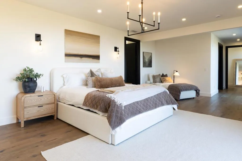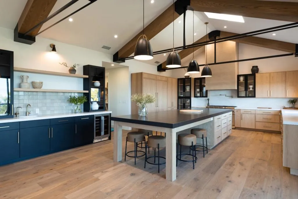 A rare opportunity to own an earthy modern estate set in the esteemed Woodside Hills with breathtaking sweeping Bay views. The residence was reimagined with uncompromising attention to detail, offering a truly like-new experience that has never been lived in. Situated on 0.98 acres, the 6,809 sq ft home blends dramatic scale with warm, livable sophistication for true California Living. The thoughtfully designed floor plan includes 4 well-appointed bedrooms, 4 designer bathrooms, 1 powder room, dedicated office, flex studio, media room, laundry/mud room, and luxurious rec room. The designer kitchen serves as both a functional showpiece and an entertainers dream, featuring open steel & beam vaulted ceiling, natural light, custom white oak cabinetry, top-of-the-line appliances, wet bar, pantry, temperature controlled wine cellar, and designer finishes. The grounds include a stunning chefs kitchen, fire pit lounge, abundance of areas to entertain, view decks, and a refreshing pool. Surrounded by other distinguished estates, 150 Brookwood Rd is an iconic offering, combining design-forward architecture, extraordinary views, exceptional outdoor living, and an unparalleled Woodside setting to create a one-of-a-kind luxury retreat. Buyer to verify.