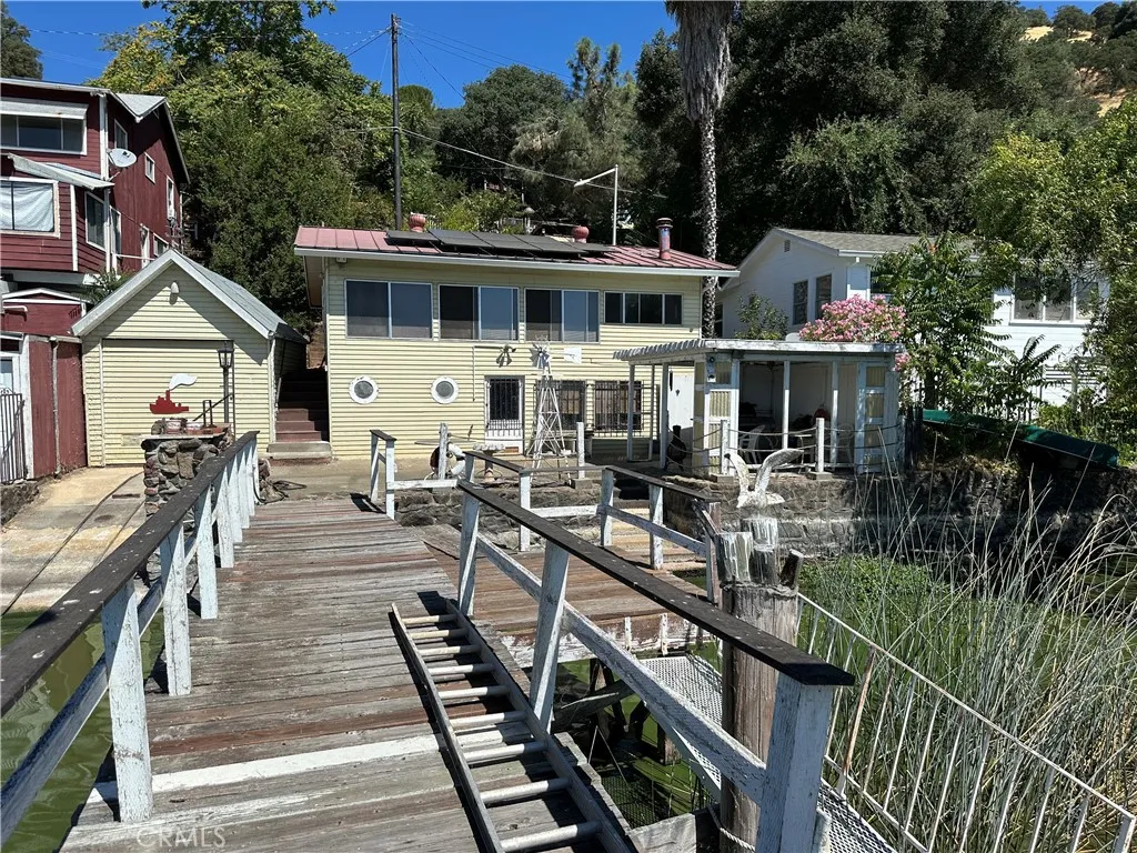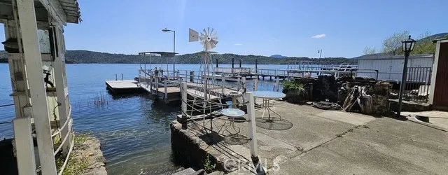 What a delightful lakefront home! Seller has had wonderful memories in this vacation home. Large dock and patio area on the waterfront. Ramp to pull in wave runner. Wave runner comes with the home also. 1 BD and 1 BA upstairs and 2nd BD downstairs. Pellet stove in living and dining room area. Workshop downstairs. Newer metal roof with solar panels that are leased. Carport area too.