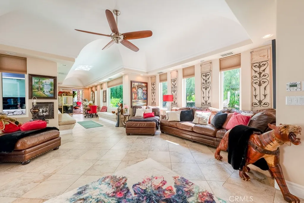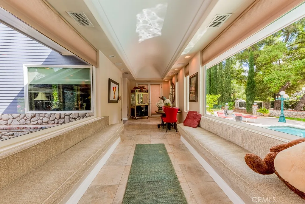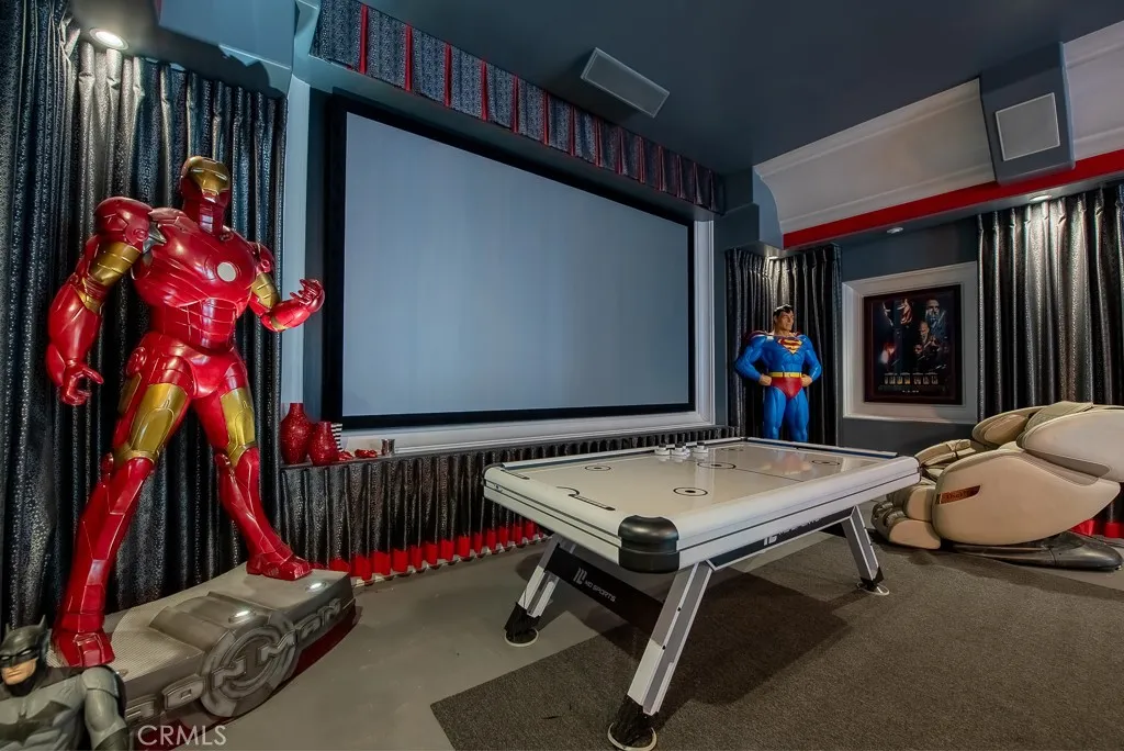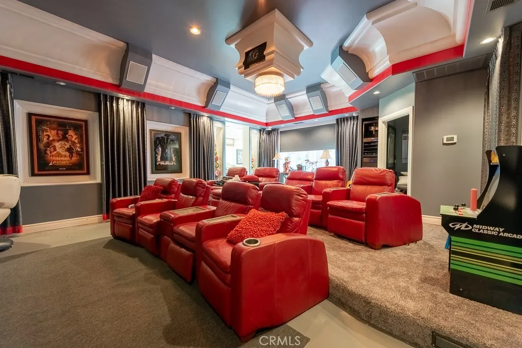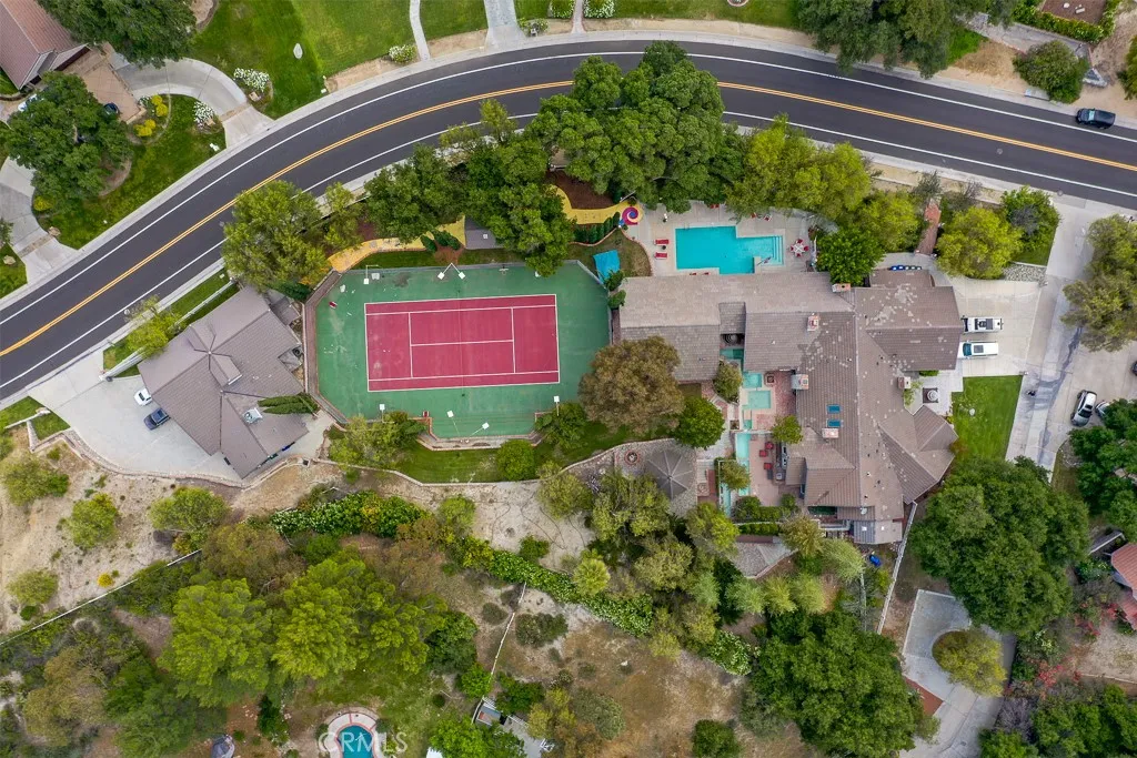 PRIVATE RESORT ESTATE | Approximately 1.5 ACRES | 10+ SEAT THEATER | NEWER ADU + MASSIVE RV GARAGE | TENNIS COURT Set on approximately 1.5 acres in prestigious Sand Canyon, this exceptional single-story estate offers a rare combination luxurious privacy & true resort-style living. Designed for both grand entertaining, the property showcases expansive living spaces & seamless connection to its rich outdoor environment. Main HOME features wide, light-filled interiors that flow naturally to the outdoors, creating an effortless indoor-outdoor lifestyle. True custom entertainer’s kitchen, top-of-the-line Thermador appliances, generous prep areas,breakfast bar with luxurious built-in seating — ideal for gathering, hosting! Primary suite is a private retreat, fireplace, steam shower, massive walk-in closet, and its own personal courtyard with a mini pool — offering a level of privacy& luxury rarely found. Two additional bedrooms are generously sized and each include walk-in closets, providing comfort and functionality throughout. A standout feature of the property is the professional, stunning 10+ seat private movie theater/gameroom designed to deliver a true cinematic experience at home. Whether hosting events or enjoying a quiet night in, this space elevates the home to a level of luxury and entertainment that sets it apart. Complementing the main residence is a newer 1,000+ sq ft ADU w/high, fireplace, lavishly built offering flexibility for guests, extended family, or private workspace. Attached to the ADU is a massive RV garage, ideal for car collectors, recreational vehicles, or additional storage — a rare and highly desirable feature in the area. The estate is further enhanced by a full north-south tennis court, expansive paved driveways, a 3-car garage, and parking for 15+ vehicles, including a secondary circular driveway at the private road of the property — perfectly suited for large gatherings and events. The grounds are truly resort-like, featuring multiple & unique mini-pool access from several areas creating a one-of-a-kind outdoor experience. While the property offers incredible scale and amenities, some areas of the home and grounds would benefit from care, maintenance, and finishing touches, presenting an opportunity to further enhance and personalize this already remarkable estate. This is more than a home — it is a private resort-style compound offering flexibility, scale, and amenities rarely available in Sand Canyon.