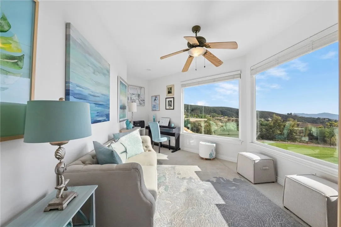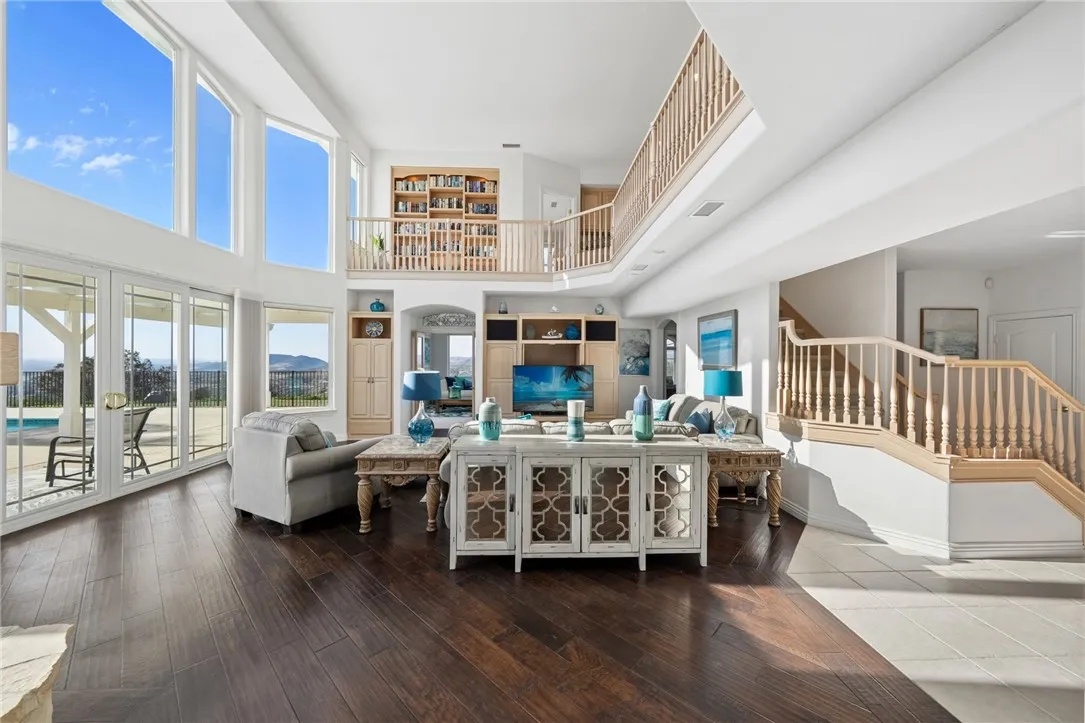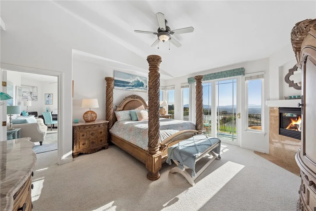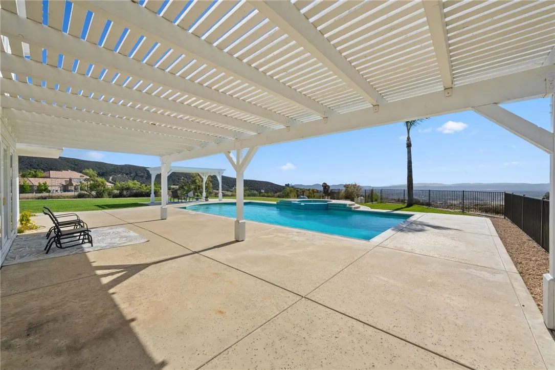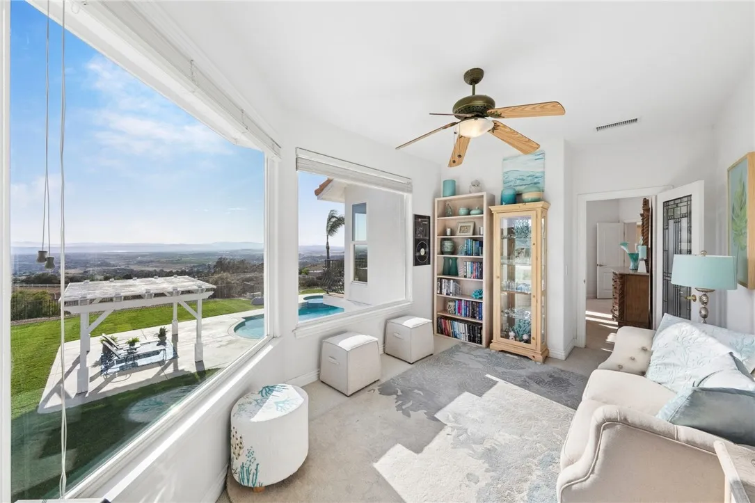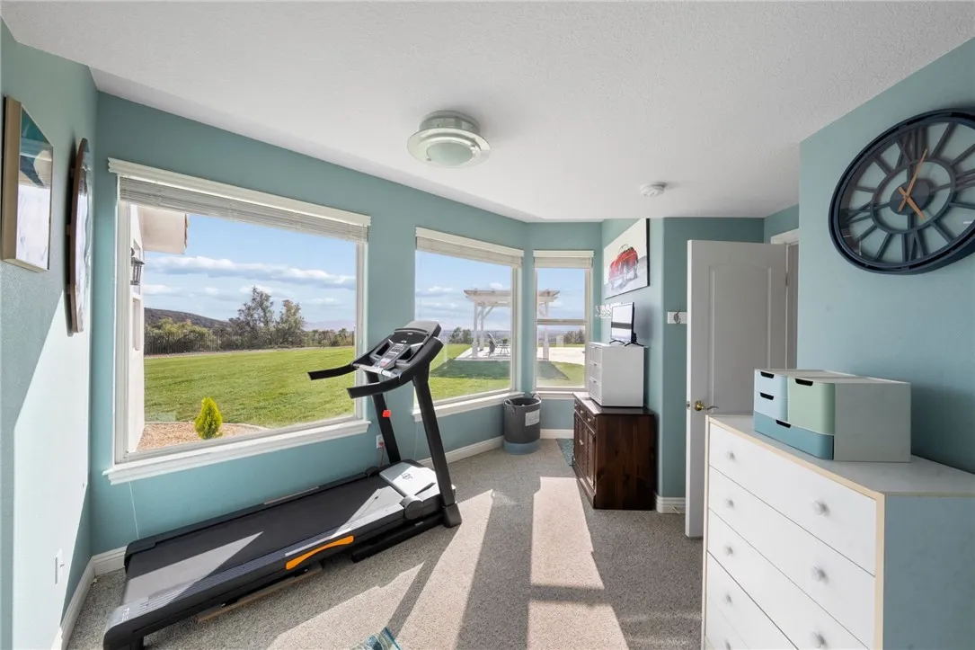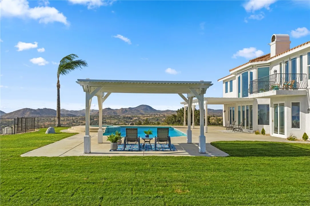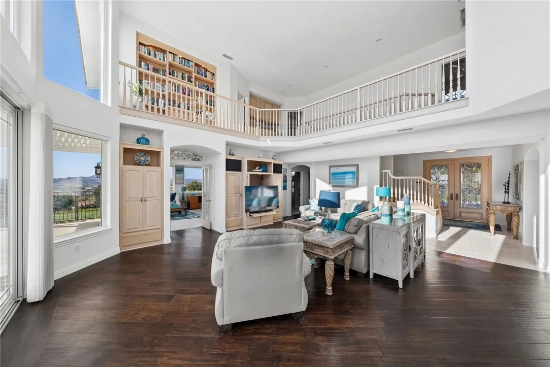 Welcome to this exceptional home in one of Temeculas most desirable locations, perched on top of a hill in Glen Oaks. With panoramic sunset views, city lights and hot air balloon sightings, this home offers a lifestyle that is truly hard to replicate. Situated on nearly 5 acres, this home was built in 2001 with a serene setting with freshly landscaped front and back lawns. The backyard is an entertainer’s dream, complete with a sparkling 43x20 pool and spa, all perfectly positioned to take in the views. Large windows throughout the home flood the interior with natural light and frame the scenery from nearly every room, while 20 foot ceilings create an open and inviting atmosphere. Spanning 4,230 sq. ft. this home features 5 bedrooms and 3.5 bathrooms, including two conveniently located downstairs bedrooms, along with a full bathroom and a guest bathroom. As you enter, you’re immediately welcomed by views of the backyard, the pool, and the bright open layout, with a central fireplace connecting the family and dining rooms. An additional downstairs room offers the perfect space for a home office with inspiring views. Car enthusiasts and those desiring extra space will appreciate the garage setup, featuring an oversized 3 car garage, an additional 2 car garage with separate access, and a detached 3 car garage, ideal for an ADU, Airbnb, workshop, or additional storage, bringing the total to 8 garage spaces. Upstairs, the layout continues to impress. The primary suite is privately situated and includes two large walk in closets, a fireplace, private balcony, spacious bathroom with dual vanities, and a versatile bonus room ideal for a nursery, office, or sitting area, all overlooking the stunning landscape. Just outside the primary suite is a conveniently located laundry room. Across the catwalk, you’ll find two additional bedrooms, each featuring spacious walk in closets and connected by a Jack and Jill bathroom. Just outside the bedroom is a library style bookshelf with lighting and continued views completing this thoughtfully designed space upstairs. Original owners have made numerous updates adding comfort and efficiency to the home. Ideal location in Glen Oaks, with paved roads, without the burden of HOA, this home offers low taxes, close proximity to wineries, and a setting that captures the very best of Temecula living. This is truly a special property that must be experienced in person. This is truly a special property that must be experienced in person.