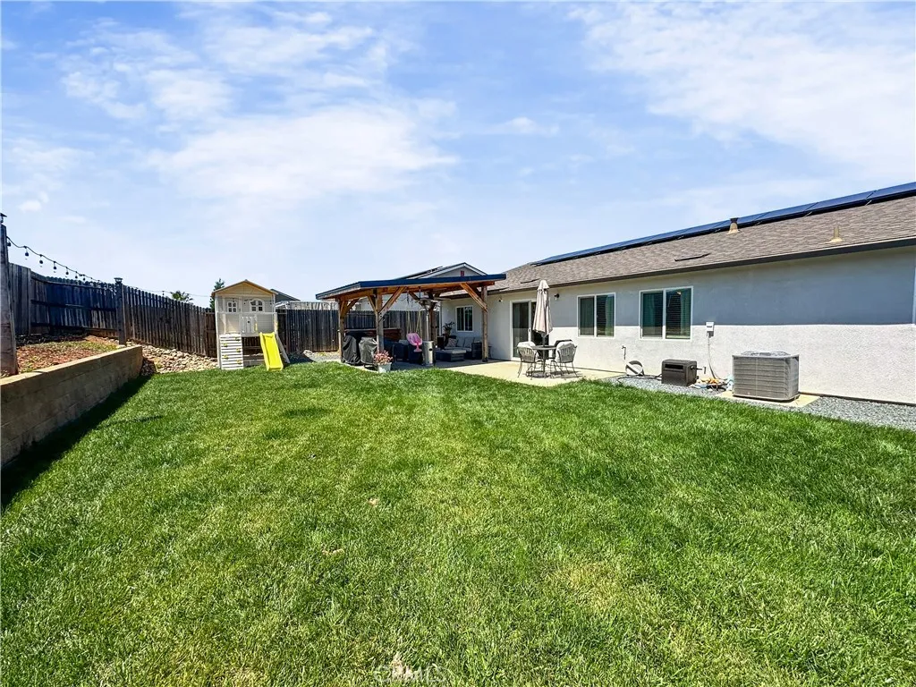 Check out this gorgeous, move in ready home in a very desirable Oroville neighborhood! This spacious home boasts 1,668 sq ft of living space, and offers 3 bedrooms, 2 bathrooms and an additional bonus room that would be perfect for a home office, second living room, nursery, etc. As you enter, you’ll immediately notice the open layout, where the extra-large living room connects to the beautifully updated kitchen. The kitchen features custom cabinets, granite countertops, and a large island. The open concept and large centrally located island make it a perfect setup for entertaining and gatherings. All of bedrooms are good sized, with the primary suite being exceptionally large, complete with a walk-in closet and its own private bathroom. The primary bath has a walk-in shower and dual sinks for added convenience. The backyard is thoughtfully landscaped with a beautifully manicured lawn, a large, covered patio area, and string lighting adding to this property's perfect setup for entertaining, or, just enjoying the peace and quiet of a backyard BBQ. Additional features include central heating and air, solar for energy efficiency, and a spacious two car garage. This turnkey home is definitely one to come see in person!