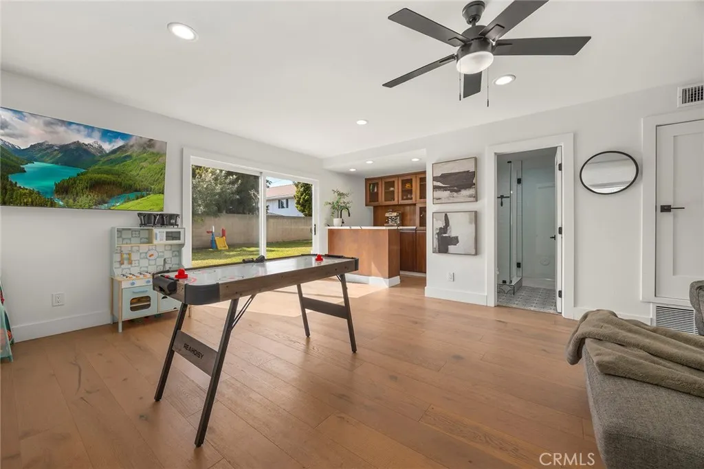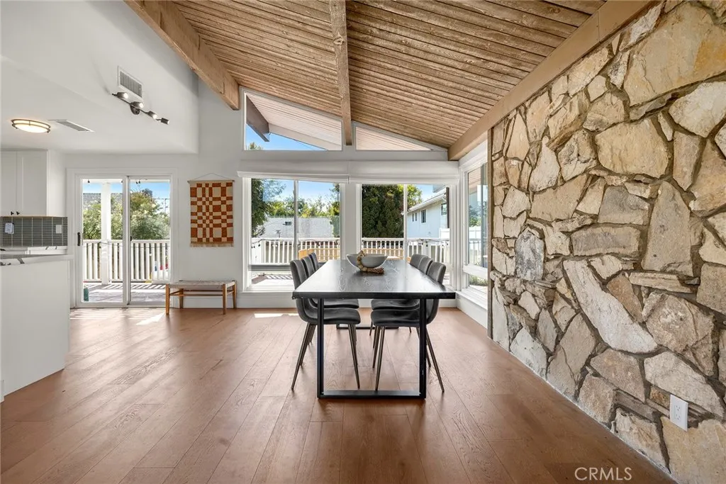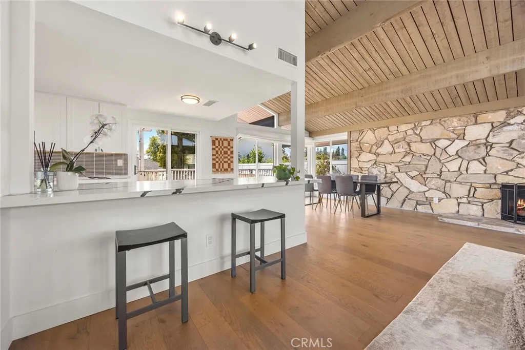 Stylish, bold and contemporary… welcome home to a fully remodeled, move in ready mid-century residence. Sited on a manicured lot within a pride of ownership cul-de-sac, welcome home to 2013 Santa Anita Ave, moments from Tuffree Park and school and short walking distance to Tri-City Park. Impactful architectural details are highlighted by a white with black trim exterior complimented by a striking roof line and original 60’s stone accents. The double door entry is a stand out with clearstory window above and floor to ceiling window beside. Step inside to a fully remodeled interior with an understated vibe, allowing the stunning wood beamed ceilings to stand out. Terraza tile flooring is found in the foyer and is perfectly complimented by warn tone wood type flooring that is found throughout the home. Turning to the right an open concept living and dining room is found with a multitude of windows, a gas fireplace and a striking wall of stone that runs the entire wall. The open concept kitchen flows seamlessly with the living areas and enjoys a dining bar and expansive quartz counter and generous cabinetry. S.S. appliances include a gas range, dishwasher and vent hood, a sliding door and large window over the sink overlook the rear terrace and backyard. The lower level of the home features a comfortably sized family room with walk-behind wet bar and a fully remodeled ¾ bathroom with custom tile and modern finishes. Direct access to the 2-car garage is also found. A sliding door leads directly out to the backyard lawn. Upstairs a generously sized primary suite features vaulted ceilings and dual sliding doors leading to an east facing balcony, clearstory windows above the sliding doors continue the mid-century architectural cues. A fully remodeled en-suite has a dual sink vanity and modern and tasteful tile details. Two secondary bedrooms share easy access to the hall bathroom which also features dual sink vanity and custom tile flooring and bathtub tiling. The 4th bedroom is a unique space and would make an ideal home office, tucked away from the rest of the home. Other recent upgrades include tankless water heater, PEX plumbing, roofing, windows and electrical panel.