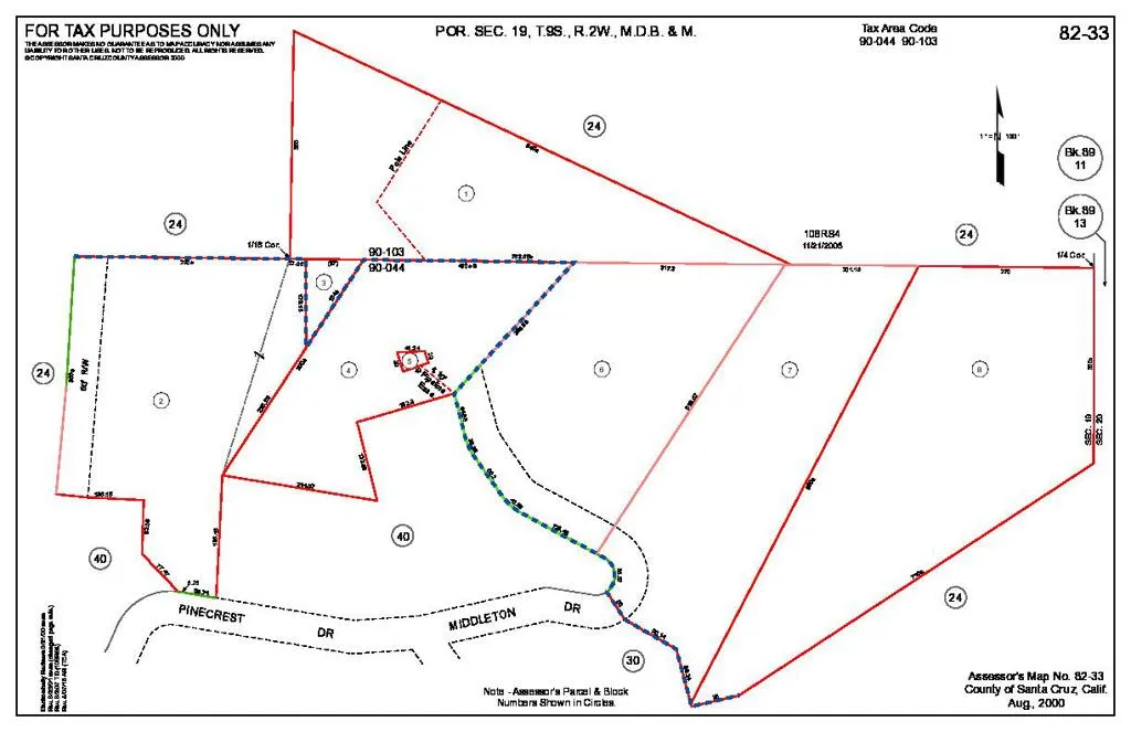 Panoramic views of mountains and valleys possibly available from this near ridge top location above Boulder Creek. Two possible building sites. Water meter, electricity at street, previous soils report good, partially graded driveway and building site. Easy access via paved road.