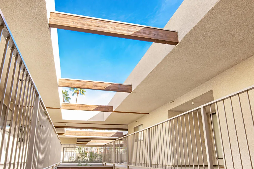 Ground floor end unit in a sought-after community located a few blocks from the active downtown area. This architecturally significant complex, designed by Hugh M. Kaptur, is a strong investment. Make it your primary home or weekend getaway. Seasonal 30-day minimum rentals are also a possibility. Enjoy the large community pool and spa, racquetball court, tennis/pickleball court, meeting room, and dog release area. The unit is conventionally located near the pool and parking. The kitchen has updated countertops, appliances, and lighting. Large living room/dining area with patio access and mountain view. Both bedrooms are spacious, and the bathrooms are upgraded.The patio also has a full-sized laundry room and a pedestrian gate for easy access to your assigned carport parking spot. Take advantage of being able to quickly make your way downtown and enjoy restaurants, shopping, theatre, casino, and activities. The airport is just a few minutes away. HOA dues of $595 includes: earthquake insurance, water, sewer, and trash. Land lease runs to year 2080 at $305 a month(paid quarterly).