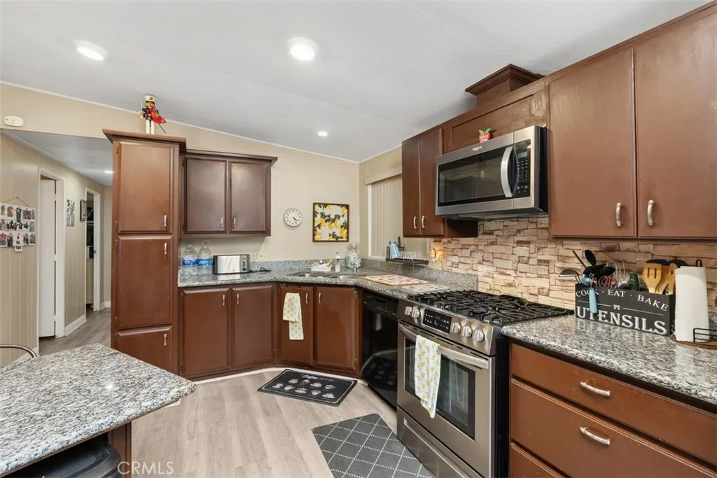 Beautiful 2-bedroom 2 bath mobile home located in the exclusive Rancho Ontario. This home offers a big main suite floor plan, with a beautifully updated stand-up shower. Updated kitchen countertops. This home's floorplan boasts the main suite and guest bedroom and guest bathroom in the back part of the home. The home offers a 2 yr A/C unit, 3yr roof, vinyl flooring throughout the home, newer water heater, the driveway can fit up to 2 small vehicles and also offers a shed. Renovated amenities await you offering a heated pool and spa opened year-round, a hall to host any event, our clubhouse offers a billiards room, card table room, a fitness room as well as a gym or lounge area to just sit and relax. The Park also offers an active area with two pickleball courts, bocce ball and we didn't forget about your fur babies, two dog parks. Don't miss out on touring and calling the beauty your home.