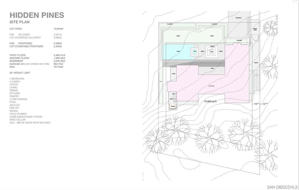 Welcome to Hidden Pines—a serene, tucked-away lot in one of Del Mar’s most coveted neighborhoods. This rare offering blends seclusion and privacy with easy access to everything that makes Del Mar and North County San Diego so desirable. Set on a 13,980 sq. ft. parcel and zoned R1-10, the property presents an exceptional opportunity to design your dream home. City guidelines may also allow for a Junior ADU or an ADU of up to 1,000 sq. ft., subject to setbacks and approval (buyer to verify with the City of Del Mar). Conceptual renderings envision a 5,730 sq. ft. custom residence plus a 797 sq. ft. ADU—plans not yet approved—showcasing the potential of this remarkable site. Perched to capture sweeping Pacific Ocean views, the lot invites you to create a retreat that fully embraces the coastal lifestyle. Just outside your door, the trails of the Torrey Pines Reserve Extension await. Within minutes, you can stroll Del Mar’s world-famous beaches, explore the dramatic beauty of Torrey Pines State Reserve, or take in the energy of the iconic Del Mar Racetrack. Quick access to I-5 and the Solana Beach Train Station makes commuting or weekend getaways to San Diego, Orange County, or Los Angeles seamless. This is a rare chance to secure a piece of Del Mar’s coastal charm—an inspiring canvas for the home you’ve always imagined, in a setting that truly has it all.