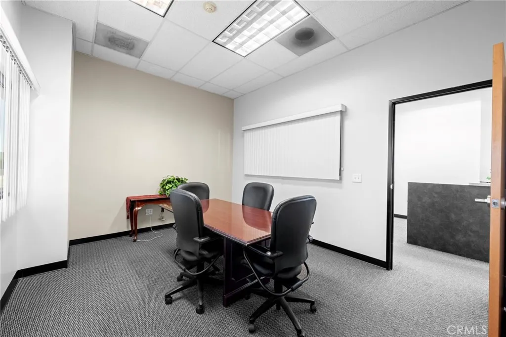 Modern Office setting offers secure, convenient first-floor entry with reception area and reception desk, multiple desk/work stations, 2 separate private offices, 2 conference rooms, a kitchen and a cozy common area. Employees & clients will have plenty of parking, easy freeway access with anchor tenant. Carpet will be replaced by landlord at tenant move-in.