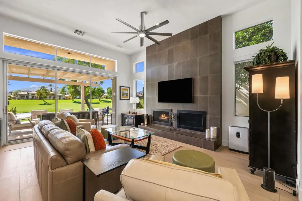 Welcome to 745 Box Canyon Trail, a desert gem in Indian Ridge Country Club. Step into sophistication with this Acacia 3 floor plan, thoughtfully reimagined with extensive upgrades inside and out. Perfectly positioned on the 7th hole of the Grove Course, this south-facing stunner captures sunshine and sweeping views--ideal for your morning coffee or sunset cocktail on the expanded, covered patio. Inside, the transformation is as stylish as it is smart. Pony walls have been removed to create an open, flowing layout anchored by a chef-inspired kitchen--complete with a new island, exceptional functionality, and a beautifully updated design. The addition of a powder room adds convenience, while the redesigned primary bath offers spa-like serenity with a double vanity and generous walk-in shower. Meticulously maintained and radiating tranquility, this home delivers the perfect balance of luxury and livability, a haven whether you're here full-time or just for the season. Don't miss your chance to make this exceptional home yours! Furnished per inventory, Club Membership available.