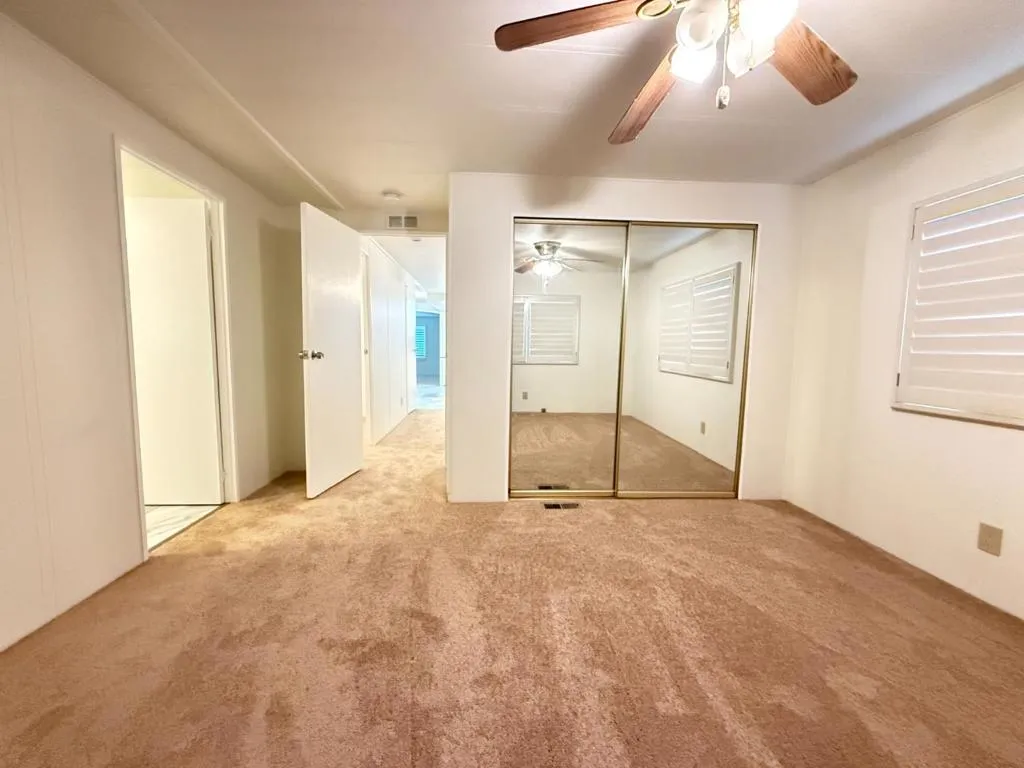Explore this 1978 home located in the Community of Delta Hawaii. This cozy residence offers approximately 1,344 sqft of space, featuring 2 bedrooms and 2 bathrooms. The living room has windows that invite plenty of natural light, enhanced by fresh interior paint and newly installed carpet throughout the home. The family room has ceiling fan with lights and carpet. The kitchen is well-equipped with a refrigerator, an oven, a stove, an island, tile flooring, cabinets, garbage disposal, granite countertops and ceiling lights. In the master bedroom, you'll find carpet, mirrored closets, and ceiling fans with lights, while the guest bedroom has carpet and ceiling fan with lights. The bathrooms are fitted with tile flooring, a tub and a shower. For your convenience, a washer and dryer are included. Central AC and heat included. Stop by today!