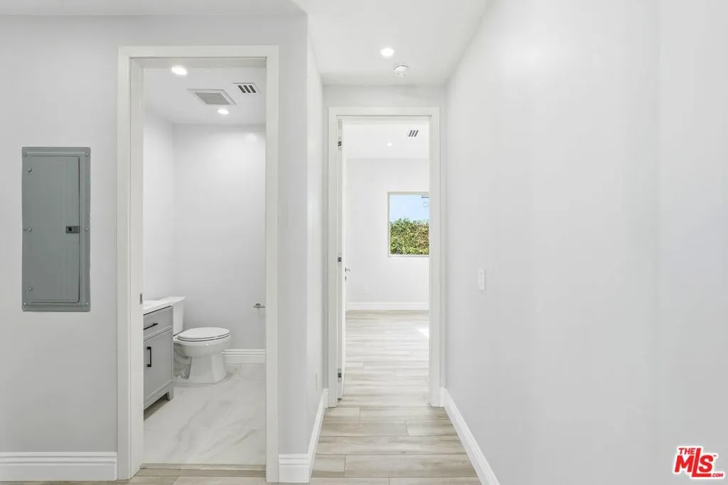Brand-new modern single-family residence for lease in Van Nuys, bordering Valley Glen, offering 5 bedrooms, 4.5 bathrooms, and approximately 2,700 sq ft of beautifully designed living space. This never-lived-in home features soaring high ceilings, open-concept floor plan, wide-plank hardwood-style flooring, recessed LED lighting, and abundant natural light throughout. Sleek contemporary kitchen with custom cabinetry, premium countertops, and stainless steel appliances opens seamlessly to spacious living and dining areas, ideal for everyday living and entertaining. Luxurious primary suite includes a spa-inspired bathroom with freestanding soaking tub, oversized glass shower, and dual vanities. Additional bedrooms are generously sized with stylish modern bathrooms. Convenient upstairs laundry area. Exterior highlights include modern curb appeal, gated entry for privacy, expansive concrete patio areas, and private front and rear yard spaces perfect for outdoor enjoyment. Attached 2-car garage plus additional driveway parking. Fully paid-off solar system provides energy efficiency and significantly reduced electricity costs. Prime location near major freeways, shopping, dining, schools, and minutes to Valley Glen, Sherman Oaks, Studio City, and North Hollywood. A rare opportunity to lease a brand-new luxury home in a highly desirable neighborhood.