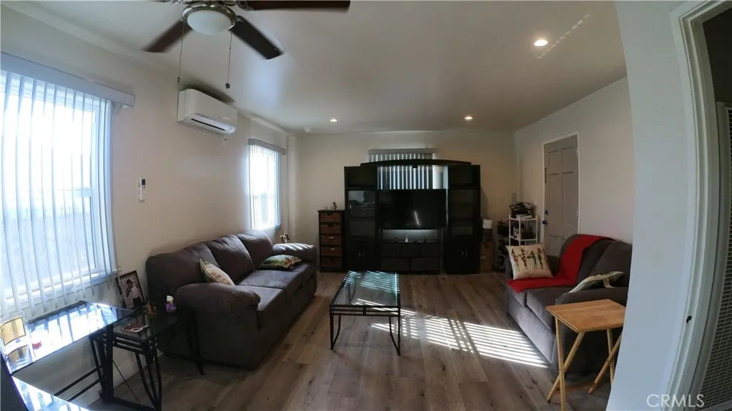 Welcome to this beautifully refreshed 2-bedroom, 1-bath home where modern comfort meets everyday convenience. From the moment you arrive, you’ll appreciate the clean, private lot, new vinyl fencing, and newly installed artificial grass landscaping in both the front and back yards—creating a welcoming, low-maintenance outdoor space you’ll enjoy year-round. Step inside and feel the warmth instantly. The bright, open layout is enhanced by new windows, newer flooring, and recessed lighting throughout the living room, kitchen, and hallway. A new mini-split A/C system, along with a wall heater and ceiling fans in both bedrooms and the living room, keeps the home comfortable in every season. The home also features a new roof and an upgraded electrical panel, offering added reliability and peace of mind. The kitchen is fully equipped with a stove and refrigerator, and the included washer and dryer make move-in day a breeze. The updated bathroom offers modern finishes and practical storage, creating a clean and refreshing feel. Both bedrooms provide generous space, natural light, and a cozy atmosphere that makes each one feel like its own peaceful retreat. Step into the backyard and you’ll find one of the home’s standout features: a spacious patio cover, perfect for relaxing in the shade, hosting barbecues, or creating an outdoor dining space you’ll enjoy year-round. With private vinyl fencing, artificial grass, and room to entertain, the backyard becomes your own personal hideaway. For added peace of mind, the home also comes equipped with security cameras, providing modern protection and convenience. Whether you’re a first-time buyer, downsizing, or searching for a solid investment, this property offers comfort, thoughtful improvements, and inviting indoor/outdoor living at a great value. Homes this clean and move-in ready don’t stay on the market long—schedule your showing today before it’s gone.