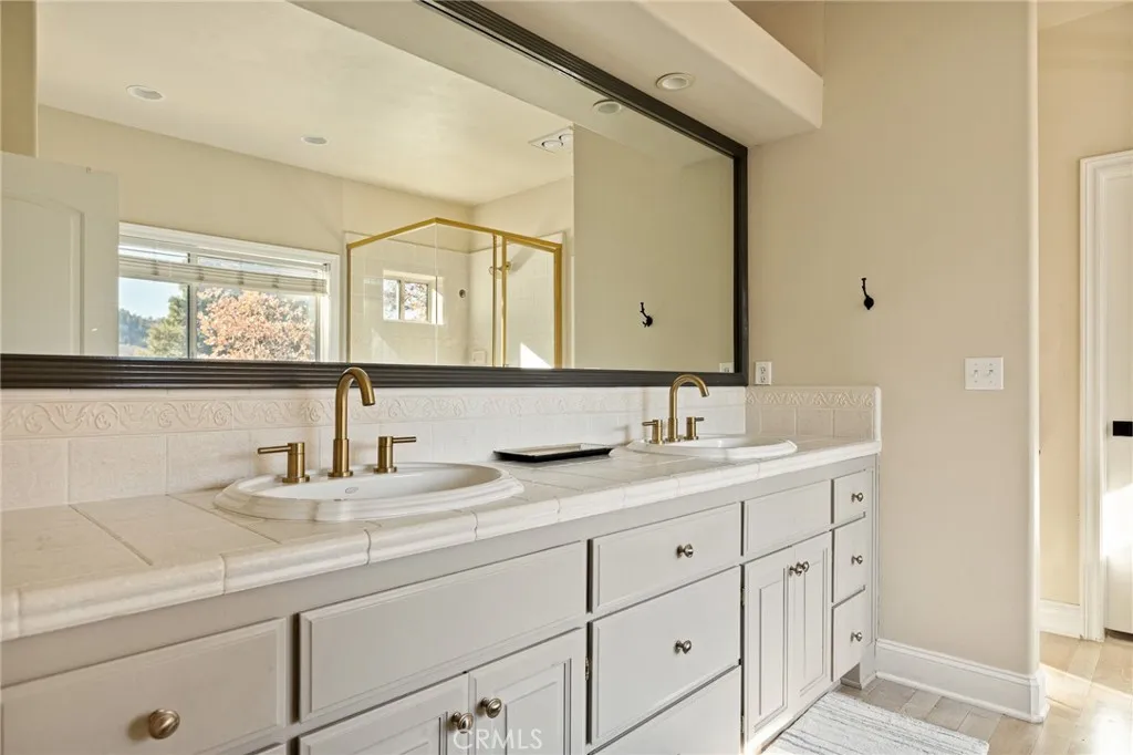Luxurious Cedar Ridge Estate With Attached Guest House — Unmatched Value in a Gated Setting Located in an exclusive gated community of estate homes, this private mountain retreat sits on a 42,253 sq ft parcel (nearly one acre) with lake rights and low HOA fees. Every home in the neighborhood rests on at least an acre, offering space, privacy, and a true sense of prestige among grand custom residences. The main residence features multiple distinct living areas designed for both entertaining and everyday comfort. A formal front living room welcomes you upon entry, while the casual living room off the kitchen and dining area is filled with natural light from oversized windows and anchored by a cozy fireplace overlooking peaceful forest scenery. A formal dining room serves as a flexible space, currently styled as an entertainer’s bar and lounge, and can easily transition back to a traditional dining room. The kitchen is both functional and stylish, offering granite countertops, stainless steel appliances, ample cabinetry, and an open layout that connects seamlessly to the dining and living spaces. The primary suite is a private retreat with generous proportions and a spa-like bathroom featuring dual vanities, a soaking tub, and a glass-enclosed shower. Guest bedrooms and bathrooms are well-sized and thoughtfully appointed throughout. Outdoor living is a standout feature. A large upper deck includes an expansive outdoor dining area surrounded by mature trees and tranquil views. Below, a lower-level patio offers additional seating and dining space. The highlight is the custom stone outdoor fireplace, creating a resort-style setting ideal for entertaining or relaxing while enjoying your private, wooded surroundings. The guest house adds exceptional versatility with a large living space, full kitchen, dedicated laundry, and a spacious private bedroom located just off the kitchen—perfect for guests, extended family, or potential income use. Additional amenities include a whole house fan, whole house generator, and ample storage. With gated privacy, estate-sized land, flexible living spaces, and exceptional indoor-outdoor areas, this home offers a rare opportunity to own a true mountain estate lifestyle.