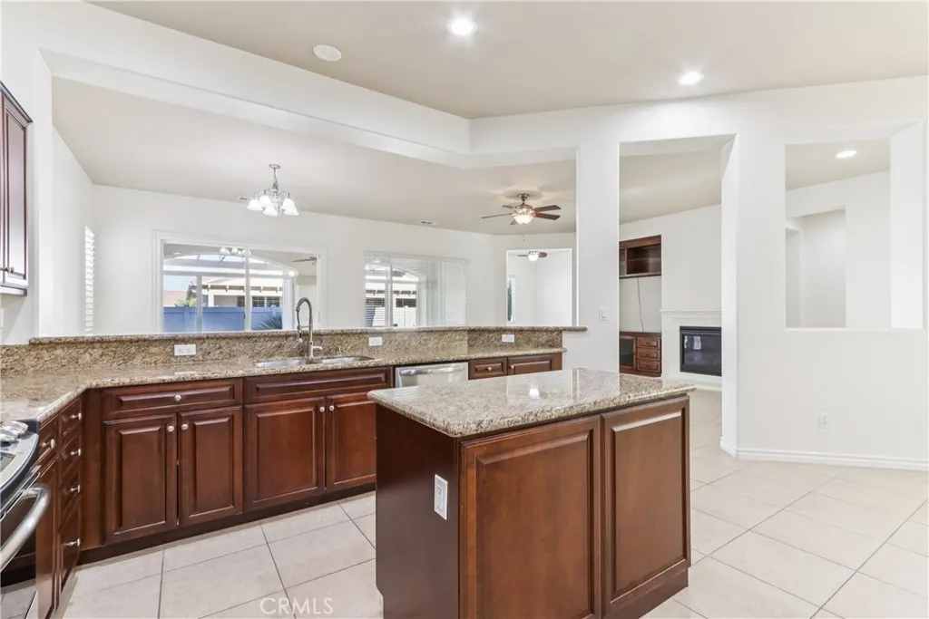 Inside, enjoy 20-inch porcelain tile throughout the main living areas, crown molding, and a cozy fireplace that adds warmth and character. The chef’s kitchen is a standout, featuring stainless steel appliances, granite counter tops, upgraded fixtures, a large island with bar-top seating, a breakfast nook, and abundant cabinetry—perfect for both everyday living and entertaining.