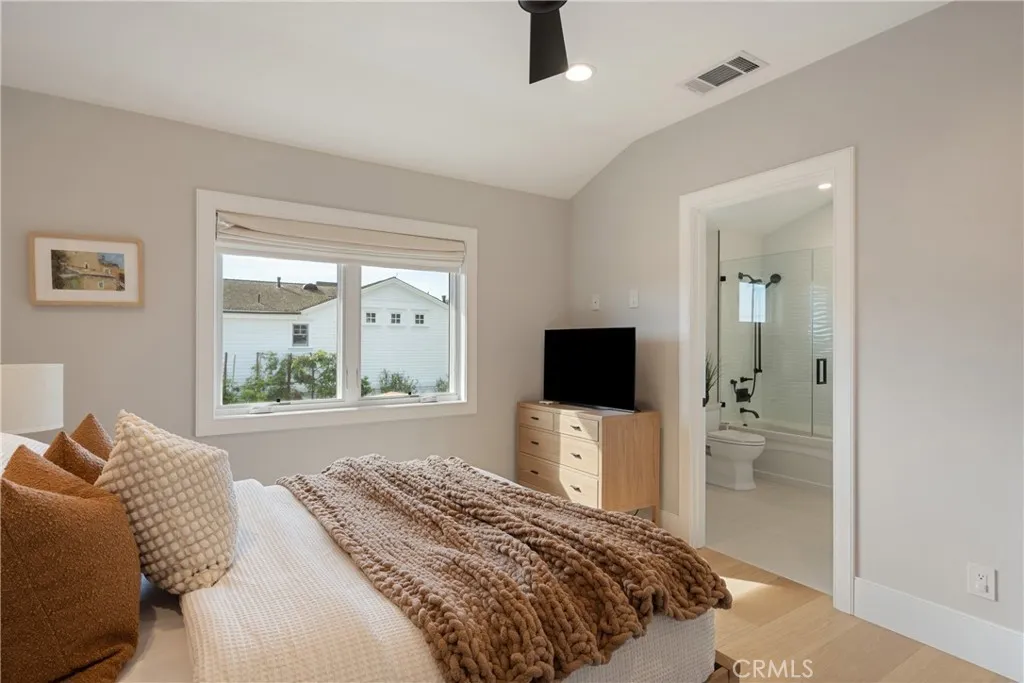 This exceptional 4,398 sqft residence is a 2021 ground-up new construction, thoughtfully designed in a contemporary farmhouse style and located on one of the most charming and sought-after streets in Newport Heights. Set on a 6,375 sq ft lot, the property features a 5-bedroom, 5.5-bath main residence, complemented by a private 1-bedroom, 1-bath Bonus room situated above the detached three-car garage, offering ideal flexibility for guests, extended family, or income-producing studio. A cobblestone walkway leads to an elegant Dutch door, opening into a light-filled interior defined by soaring ceilings and an open, airy floor plan. The main living level is designed for elevated entertaining and effortless indoor-outdoor living. Recent enhancements include professionally leveled flooring throughout the main residence, now finished with White Oak engineered hardwood, along with a full interior paint refresh, creating a refined and cohesive aesthetic. The chef’s kitchen is both functional and striking, anchored by a waterfall-edge island with seating for five and appointed with premium Thermador appliances, a custom German lazy Susan, a spacious walk-in butler’s pantry, breakfast nook, and formal dining area. Expansive pocket doors open to a private courtyard, offering a seamless transition to an inviting outdoor setting ideal for entertaining or quiet retreat. All five bedrooms are ensuite, including a desirable main-level suite for guests. The primary suite serves as a true sanctuary, featuring a fireplace, soaking tub, steam shower, walk-in closet, and private balcony. Located just minutes from the beach and within close proximity to Lido Village, cafes, boutiques, top-rated schools, and coastal amenities, this residence delivers a rare combination of architectural sophistication, modern comfort, and Newport Beach lifestyle appeal.