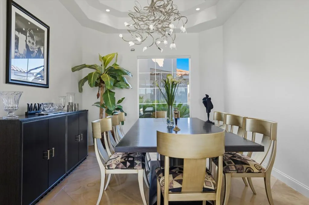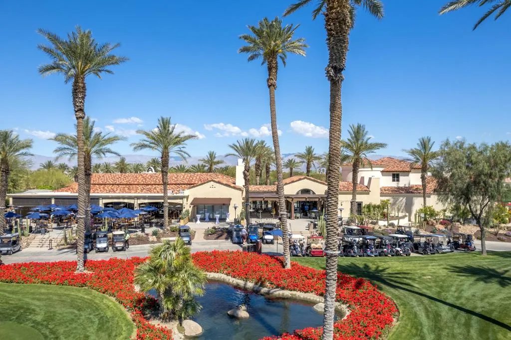 PRICE IMPROVEMENT. Motivated sellers - and has a transferable golf membership. Can easily convert the office into a 4th bedroom with ensuite, and do other updates, all for far less than other comps. Welcome to effortless desert living in this move-in-ready residence, thoughtfully designed to capture the relaxed elegance of the desert. An open and airy floor plan creates a seamless flow between the living, dining, and kitchen spaces, making the home ideal for both everyday comfort and entertaining family and friends. Soaring ceilings, gleaming stone floors, and expansive walls of glass flood the interior with natural light while showcasing beautiful fairway views and enhancing the indoor-outdoor lifestyle the desert is known for.The spacious great room flows effortlessly into the gourmet kitchen, featuring custom cabinetry and premium finishes--perfect for casual living or hosting gatherings. The luxurious primary suite offers a serene retreat with a spa-inspired bath and generous walk-in closet, while a flexible office/den provides versatility. It can easily be made into a 4th bedroom for visiting guests.Featuring an expansive 12,000 sf lot with a private, beautifully designed backyard, ideal for true desert living. Enjoy a covered patio, custom pool and spa, professional landscaping, and unobstructed golf course views--perfect for morning coffee, afternoon relaxation, or sunset entertaining.A private courtyard entry adds charm and privacy, while the three-car garage provides excellent functionality and storage. Ideally located just moments from the clubhouse, fitness center, pickleball and tennis courts, this home places you at the heart of a vibrant, amenity-rich community.Whether you're seeking a full-time residence or a seasonal escape, this is a rare opportunity to settle into refined, carefree living in one of the desert's most sought-after country club settings.