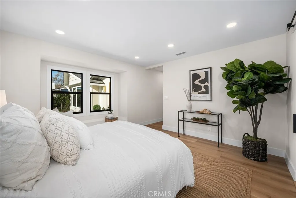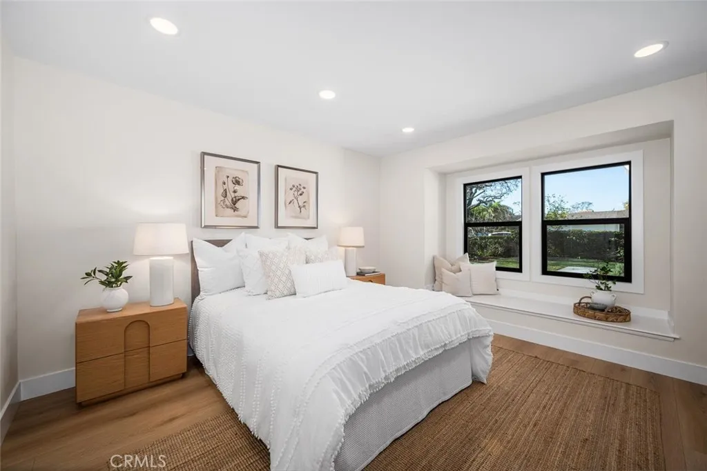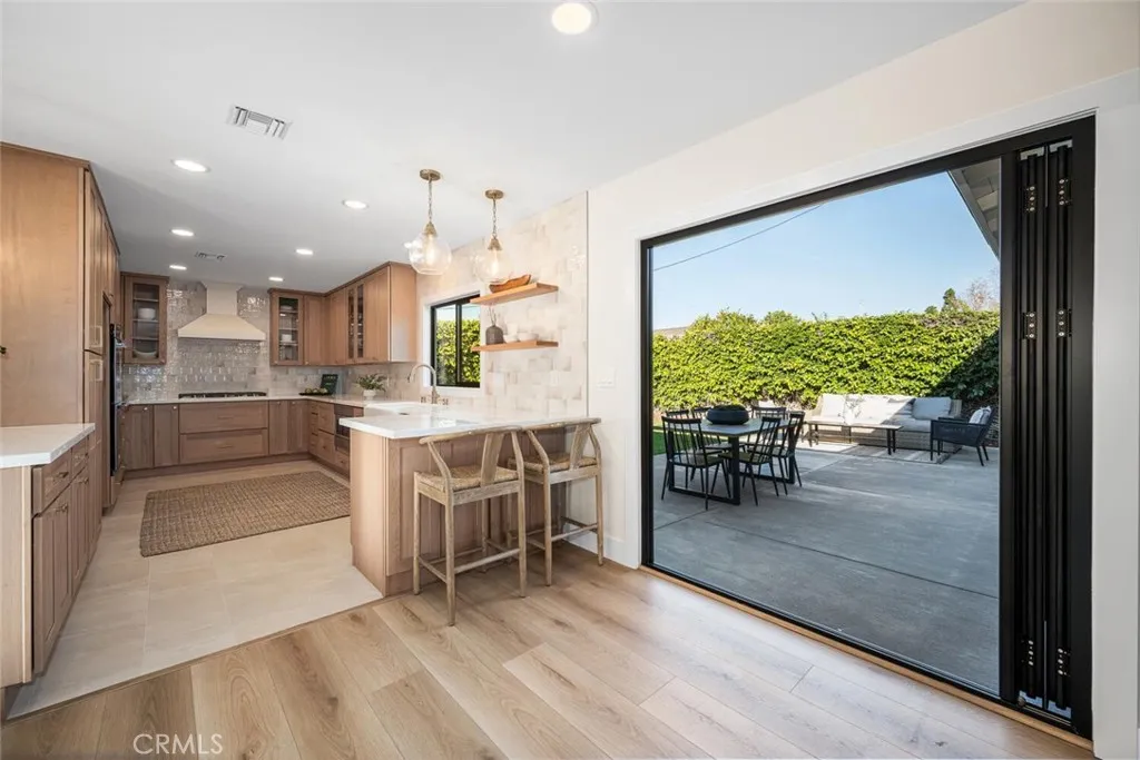 WELCOME HOME! This beautifully updated and expanded Plymouth model home is ideally located in the heart of Rossmoor and offers 4 bedrooms, 3 bathrooms, and 2,343 square feet of thoughtfully designed living space. Perfect for modern living, the home features dual primary suites and two separate living areas, providing comfort and flexibility for families of all sizes. The recently remodeled kitchen is both functional and stylish, showcasing wood shaker cabinetry, Dolomite countertops, stainless steel appliances, a farmhouse sink, Zellige tile backsplash, and dual peninsulas, ideal for everyday living and entertaining. The dining room is highlighted by an accent paneled wall and a rattan chandelier, creating a warm and inviting space for gatherings. The expansive rear family room features a smooth stucco fireplace and large bi-fold doors, allowing for seamless indoor–outdoor living. The rear primary suite offers dual closets and a beautifully remodeled ensuite bathroom with a wood tile shower surround and seamless glass shower enclosure. The hall bathroom includes a stylishly updated tile surround with champagne bronze hardware and a wood vanity with Dolomite countertops. The front primary suite features a sliding-door walk-in closet and a spa-inspired bathroom with a separate soaking tub, dual wood shaker vanity, and oversized shower with dual shower heads. Additional upgrades include a new roof, new dual pane windows and doors, a new 200-amp electrical panel, tankless water heater, and a Nest controlled HVAC system. Conveniently located within walking distance to Hopkinson Elementary School and Rush Park, this exceptional home offers comfort, style, and the award winning Los Alamitos School District. Don't miss your chance to make this house your new home!