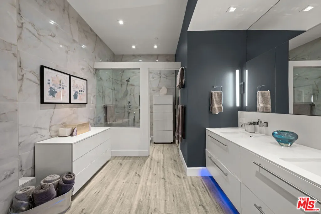 Coveted, single-level, end-unit condo at Harper West Hollywood... This unique home blends style and privacy, yet is located in the heart of West Hollywood...Thoughtfully designer-renovated throughout, the home is filled with natural light from south, west, and north exposures and enhanced by three private patios...This creates a seamless indoor-outdoor flow, perfect for both lively gatherings and quiet moments at home...The open, airy layout features custom cabinetry, Silestone quartz countertops, Porcelanosa and Danze fixtures...Newer plank flooring, and a custom, built-in home office provides a polished work-from-home retreat, while the Sonos home theater system, with speakers inside and out, sets the mood for entertaining...Comfort is elevated with two-zone central air and heat, and a full-size washer and dryer... With only one common wall, the home lives like a private sanctuary...Exceptional amount of custom storage, rare for West Hollywood condos...This keeps the spaces calm and beautifully organized...Primary bedroom features blackout shades and drapery, grass cloth wallpaper, 6 large closets, a media closet, and direct access to 1 of 3 private patios...Refined yet welcoming, this is a home designed for connection, comfort, and enjoying the very best of City living...The home may be purchased furnished for a truly turnkey opportunity, with a seller rent-back option also an option... Listing Agent is the Seller...All information deemed reliable but not guaranteed.