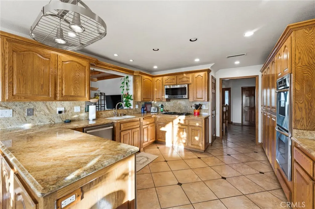 Beautiful custom home located on a large, fully landscaped cul-de-sac lot surrounded by fine properties. The gourmet kitchen features granite countertops, full backsplash, and stainless steel built-in appliances including double oven, cooktop, dishwasher, and microwave. Spacious breakfast nook with decorative etched-glass windows overlooks the rear yard. This home offers a large living room with fireplace, formal dining room, and an inviting family room with wood ceiling, second fireplace, in-ceiling surround sound, and custom French doors leading to the patio. The main level includes a private office with dedicated electrical circuit, half bath, laundry room with sink, and a ¾ bath with direct access to the backyard, pool, and garage. Upstairs features a spacious owner’s suite with fireplace, walk-in closet, soaking tub, and separate shower. Secondary bedrooms include a balcony with stunning sunset and mountain views, a charming window seat, and an additional front-facing bedroom. Plantation shutters and newer ceiling fans throughout. Entertainer’s backyard includes a covered patio, outdoor kitchen island with Fire Magic BBQ and refrigerator, heated in-ground saltwater pool and spa with waterfall, water features, and lighting. Enjoy mature fruit trees including orange, loquat, green apple, peach, Van cherry, pluerry, lemon, grapefruit, and avocado. Additional highlights include an oversized 638 sq. ft. finished side-facing garage, hard-wired internet, security system wiring prepped for cameras, and a great solar plan. Built with quality upgrades including 2x6 framing, 5/8” drywall, shear panel construction, and fully insulated walls for energy efficiency. Award-winning Redlands School District. No HOA and no additional CFD or development bonds.
