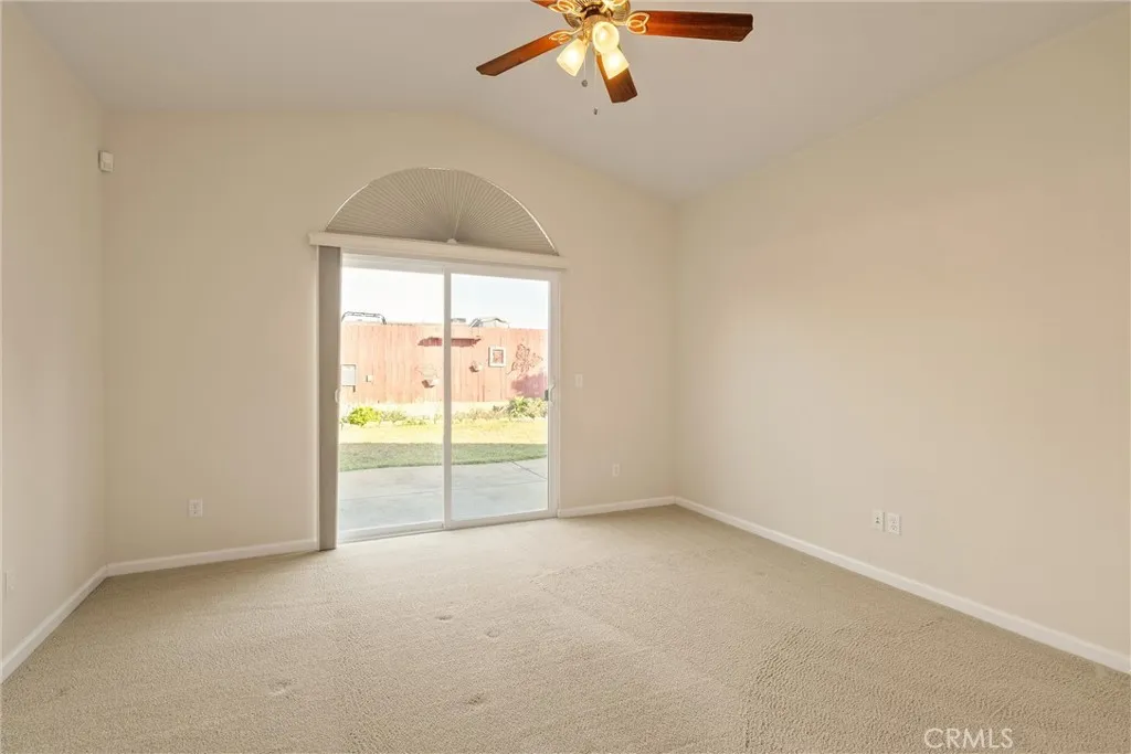 The primary suite serves as a comfortable retreat with excellent natural light from a large sliding glass door, an en-suite bathroom with step-in shower, and a walk-in closet.