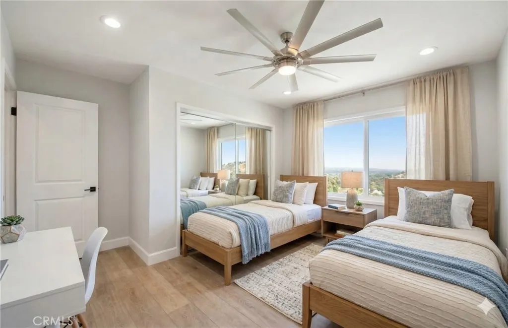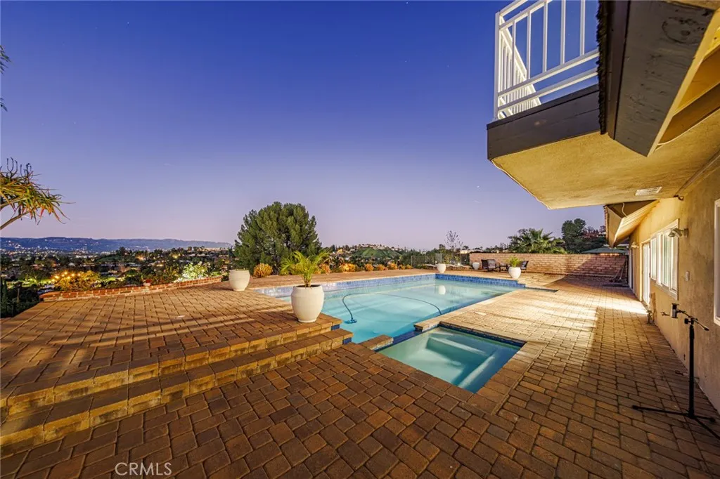 Perched above the sought-after Mulwood neighborhood of Calabasas, this contemporary home commands breathtaking panoramic views of the city and surrounding valley—truly a must-see. Thoughtfully designed with luxury and comfort in mind, every detail of this exceptional residence has been meticulously curated. The home features five spacious bedrooms and three beautifully remodeled bathrooms, enhanced by abundant natural light, recessed lighting, ample storage, and refined high-end finishes throughout. Wide-plank wood flooring paired with elegant marble surfaces flows seamlessly through the home, adding warmth and sophistication to its clean, modern aesthetic. At the heart of the home is a custom gourmet chef’s kitchen, a true showpiece outfitted with premium Wolf appliances, a Sub-Zero refrigerator, waterfall-edge countertops with accent lighting, and dramatic accordion-style glass doors that create a seamless indoor-outdoor living experience. The primary suite offers an expansive private balcony with sweeping views, a generous walk-in closet, and a luxurious spa-inspired bathroom. Situated on a quiet street, the outdoor space is equally impressive, featuring a fully hardscaped yard with a sparkling pool and spa, ideal for entertaining or unwinding under the open sky. Additional highlights include owned solar panels that dramatically reduce utility costs, a brand-new HVAC system, no HOA fees, and placement within the highly sought-after Las Virgenes Unified School District, all just minutes from Calabasas’ premier shopping, dining, and entertainment. NO HOA | LAS VIRGENES SCHOOL DISTRICT