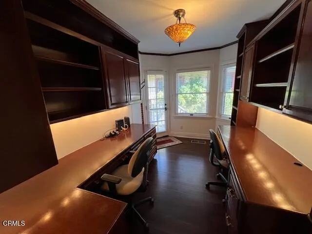Step into this timeless and stunning 1928 historic home just steps away from City Hall and the Botanical Gardens. With amazing views. This unique home offers 3 bedrooms and 3 bathrooms, a den and a office that showcases 2 beautiful built-in desk with custom wood cabinetry. The home comes partially furnished. The updated gourmet kitchen includes all stainless-steel appliances, granite countertops and plenty of custom cabinets and storage. A beautiful staircase anchors the home, complemented by rich hardwood floors, graceful architectural arches, and classic details that create warmth and character throughout. With new blinds and fresh paint, it provides a light updated feel while honoring the home's historic integrity. The natural light flows throughout, highlighting the craftsmanship and charm at every turn. Also located on the main floor of the home you'll find the spacious primary bedroom with a walk-in closet and en-suite bathroom with marble countertops, double sinks, a walk-in shower and large/separate soaking tub. And another bedroom with its own private patio entrance. One other bedrooms is located upstairs. Outside, enjoy the beautiful, landscaped grounds with mature fruit trees, creating a peaceful outdoor retreat that compliments the home's classic character and coastal setting.