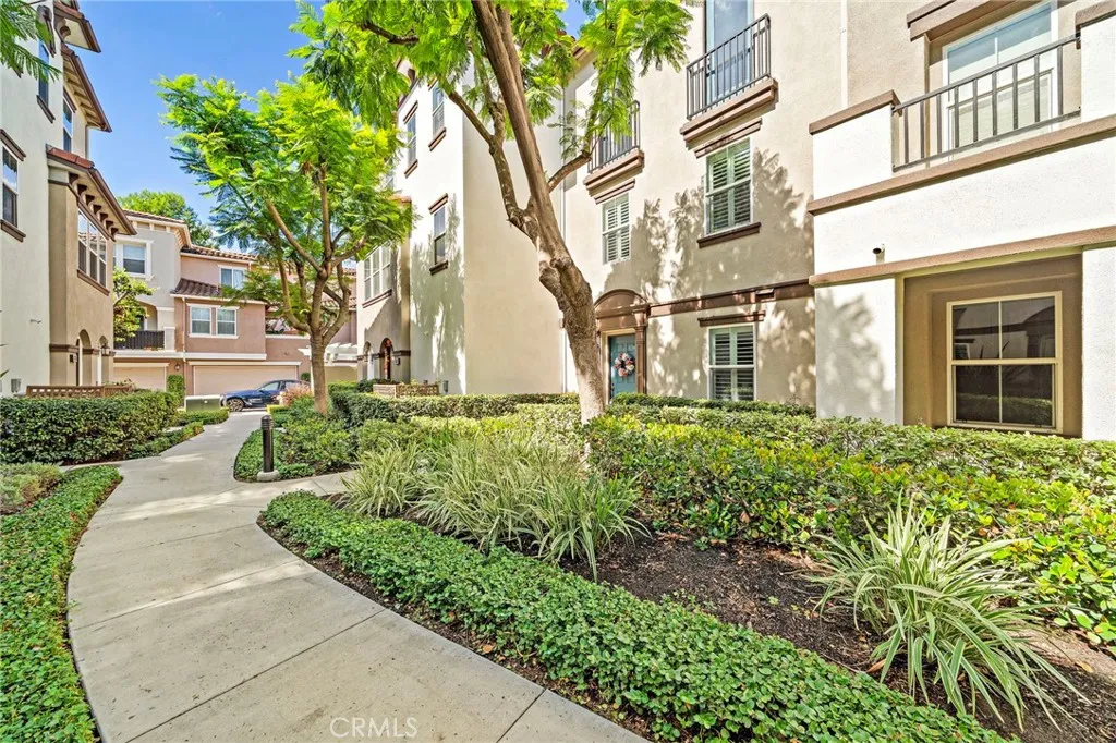Absolutely stunning tri-level townhome-style condo, quality-built by Taylor Woodrow in 2007, featuring 4 spacious bedrooms—three with private ensuite bathrooms, including an elegant primary suite. Nestled in the exclusive Palazzo community within Renaissance Plaza, this contemporary home offers 4 full bathrooms, 1,814 square feet of thoughtfully designed living space, and resort-style amenities including a pool, spa, and lushly landscaped grounds. This home has been beautifully upgraded with modern luxury finishes throughout including central A/C, volume ceilings, crown molding, dual pane windows, plantation shutters, clear-glass French doors, raised panel interior doors and closet doors, LED recessed lighting, wide-plank wood laminate flooring, and full surround-sound wiring; the remodeled chef’s dream kitchen is a masterpiece with granite countertops, full granite backsplash, rich dark-wood soft-closing cabinetry with glass display panels and under-cabinet lighting, stainless double sinks, and stainless appliances including a gas range, dishwasher, and microwave, plus a breakfast bar open to the elegant living room with fireplace, media niche, and dining area, with a French door leading to a private second-level patio perfect for evening barbeques and dining; the bathrooms showcase Carrera marble-look countertops, upgraded lighting, tile finishes, and clear-glass enclosures, with dual sinks in the primary suite, while an ensuite bedroom on the first floor, inside laundry room, and direct-access 2-car garage plus an additional guest parking provide comfort and convenience; ideally located in the vibrant heart of Stanton, close to shopping, dining, parks, and schools with quick access to the 5, 22, and 91 freeways, offering the perfect combination of modern living, convenience, and effortless accessibility.