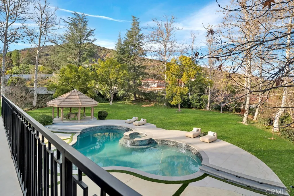 Outside, the backyard unfolds like a resort: a pool and spa, a barbecue area, expansive lawns, and meticulously landscaped grounds—all framed by the Santa Monica mountains. Located in a picturesque, gated enclave with direct access to hiking, biking, and equestrian trails, yet minutes from beaches, premier shopping, and fine dining, this property embodies the pinnacle of contemporary living. Every detail has been thoughtfully crafted for the most discerning buyer.