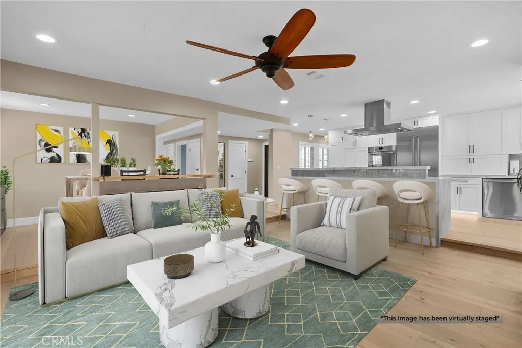 This Beautifully Remodeled Home is Absolutely Stunning! Once you enter this Gorgeous Home you will be delighted with the quality of the remodel, the open floor plan, & the Separate Living Quarters. The formal entry features an exquisite custom front door with a built in screen & engineered European Oak flooring. The expansive open-concept kitchen is a Culinary Paradise! There's an abundance of white shaker cabinetry with pull out shelves & soft-closing doors, luxurious quartz countertops, a striking kitchen island with pendant lighting & breakfast bar, all Stainless Steel Thermador Appliances: a built-in french door refrigerator & bottom freezer, built-in double ovens, built-in microdrawer microwave, 6 burner gas cooktop, dishwasher, a professional island range hood, & under cabinet floor lighting. This amazing kitchen connects effortlessly to the spacious living room that features Oak flooring, a cozy fireplace with granite hearth, ceiling fan, & a sliding glass door with a motorized privacy shade. There's a formal dining room that has oak flooring & custom built bar seating. The primary bedroom is located on the first floor & features oak flooring, bay window, ceiling fan, & mirrored closet doors. The other two downstairs bedrooms also have oak flooring, ceiling fans, mirrored closet doors, & closet organizers. The en suite bathroom has been completely remodeled with a beautifully tiled walk in shower w/frameless glass door, new vanity, new lighting, new fixtures, & new mirror. The hall bathroom has also been upgraded and features a tiled tub/shower combo, single sink vanity with corian countertop, & tile flooring. A HUGE plus to this home is that there is separate living quarters on the 2nd floor which has been remodeled. (was rented out for $1750 mo) The kitchen features white shaker cabinets, corian countertops, gas stove, refrigerator, & vinyl plank flooring. The living room/bedroom area is spacious and also has vinyl plank flooring, ceiling fans, recessed lighting. The bathroom features a walk-in shower, vanity with quartz countertop, linen closet, & a stackable washer/dryer. The peaceful backyard is beautifully landscaped. There's a he shed/she shed, garden, orange tree, new patio cover & epoxy covered cement patio. Other features include: dual pane windows & slider, recessed lighting, new interior panel doors/trim/hardware, new sprinkler system, tile roof, etc. This home is just steps from Mile Square Park, Little Saigon, & the 22/405 Freeways.