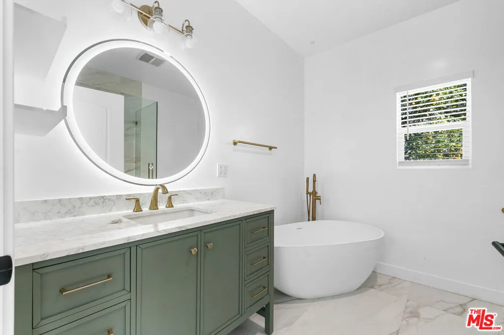 Redesigned Spanish-style home with 3 bed / 3 full baths on a quiet, tree-lined street in Rancho Park between West LA & Cheviot Hills. A welcoming front courtyard patio opens to the entryway, leading into a modernized open-concept interior with French oak floors, LED recessed lighting, and dual-pane windows. Upon entering, a light-filled family room, anchored by a sleek linear fireplace and framed by a large picture window, is complemented by sightlines to an entertainer's kitchen with an oversized island, quartz countertops, stainless steel appliances, ample storage, and a dedicated laundry area with side-by-side washer & dryer. The home features 2 primary suites and a spacious 3rd bedroom with a walk-in closet and access to the hall's 3rd full bath, perfect for guests or a home office. Step outside to a private backyard with Century City skyline views, a detached 2-car garage, and additional driveway parking. Centrally located just mins from Westfield Century City, Beverly Hills, UCLA, and The Los Angeles Country Club, while in the other direction is the vibrant dining scene of Sawtelle. The highly regarded Westwood Charter School serves as the designated elementary school. Available for immediate occupancy. Schedule a private showing.